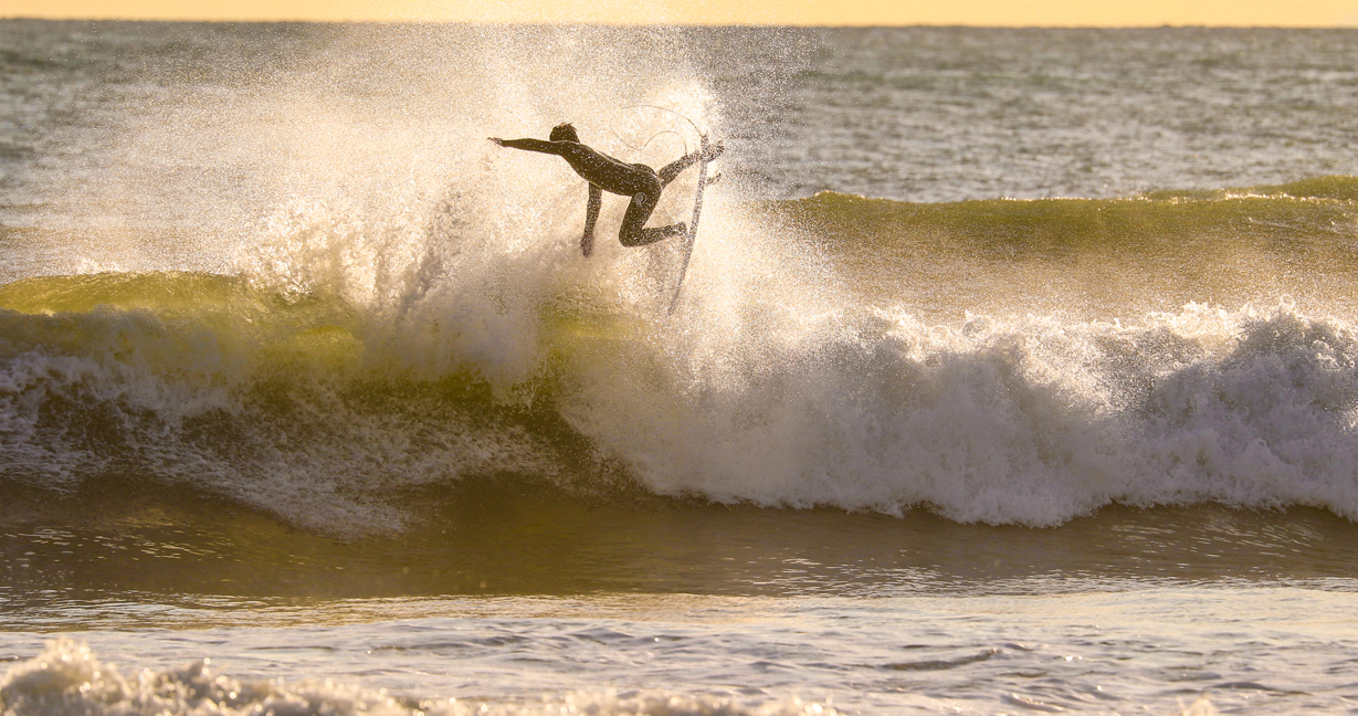 日没に近づくにつれてオフショアになり、予想外にも整っていく波。