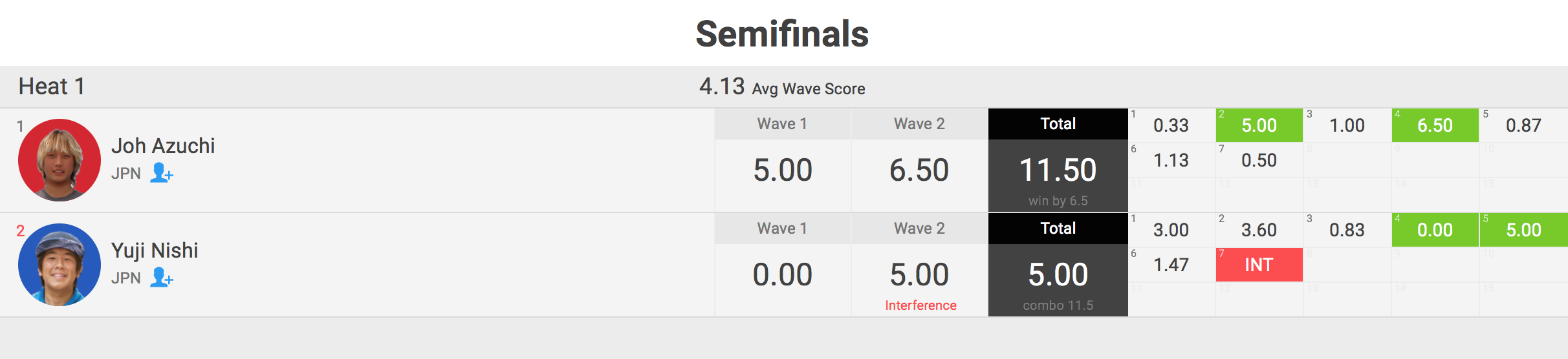 セミファイナルで安室丈と一騎討ちとなり、やむなく敗退となった西優司。安室丈とは四国の生見海岸を拠点とする幼馴染でライバル同士。今大会ではエクセレントライドも披露するなど素晴らしいサーフィンを連発した。Yuji Nishi.
