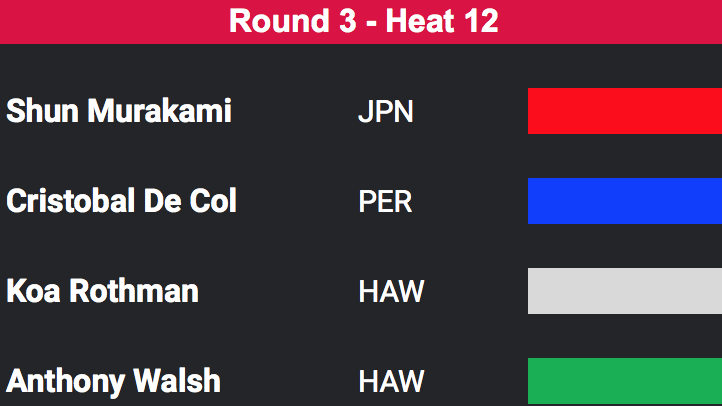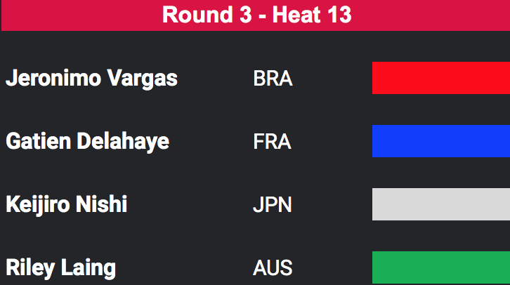 迎えるラウンド3ではヒート10に大橋海人、ヒート11に稲葉玲王、ヒート12に村上舜、続くヒート13に西慶司郎と日本人選手のヒートが続く予定。