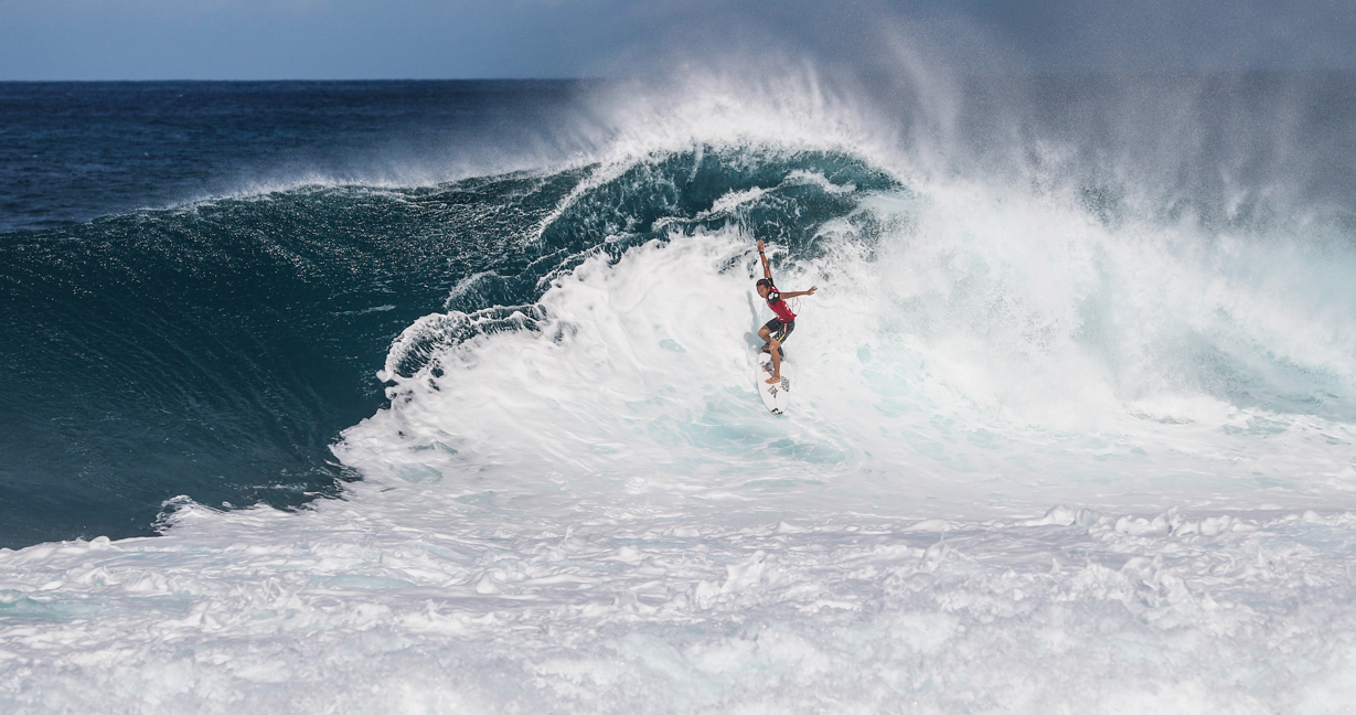 8ft前後のソリッドなセットが押し寄せるパイプラインを会場にQS3000″VOLCOM PIPE PRO”のコンテストDAY3が行われ、ラウンド3のヒート4までを消化。