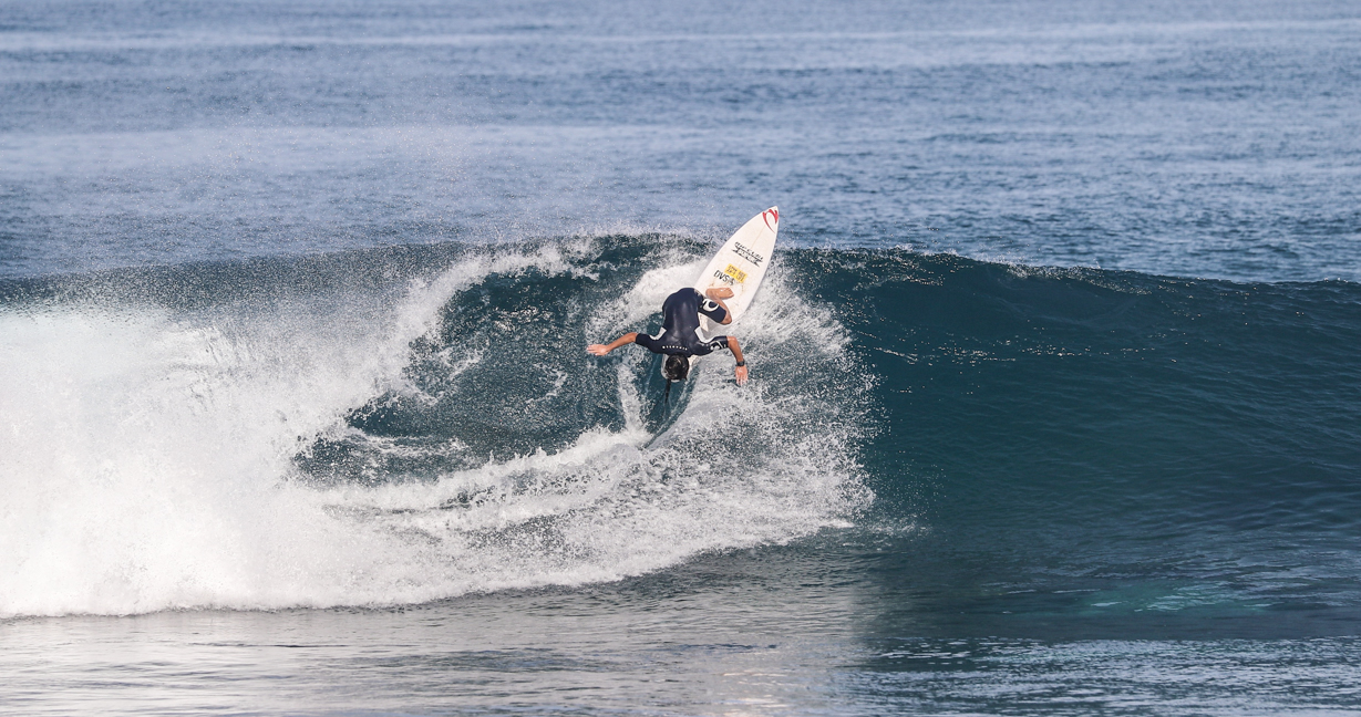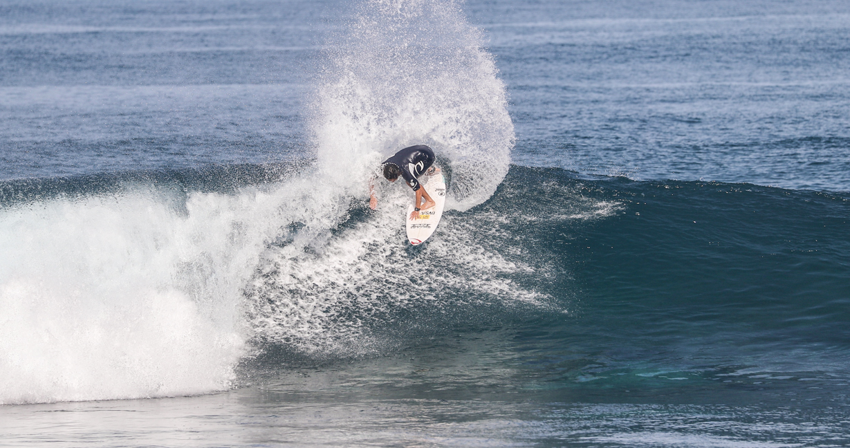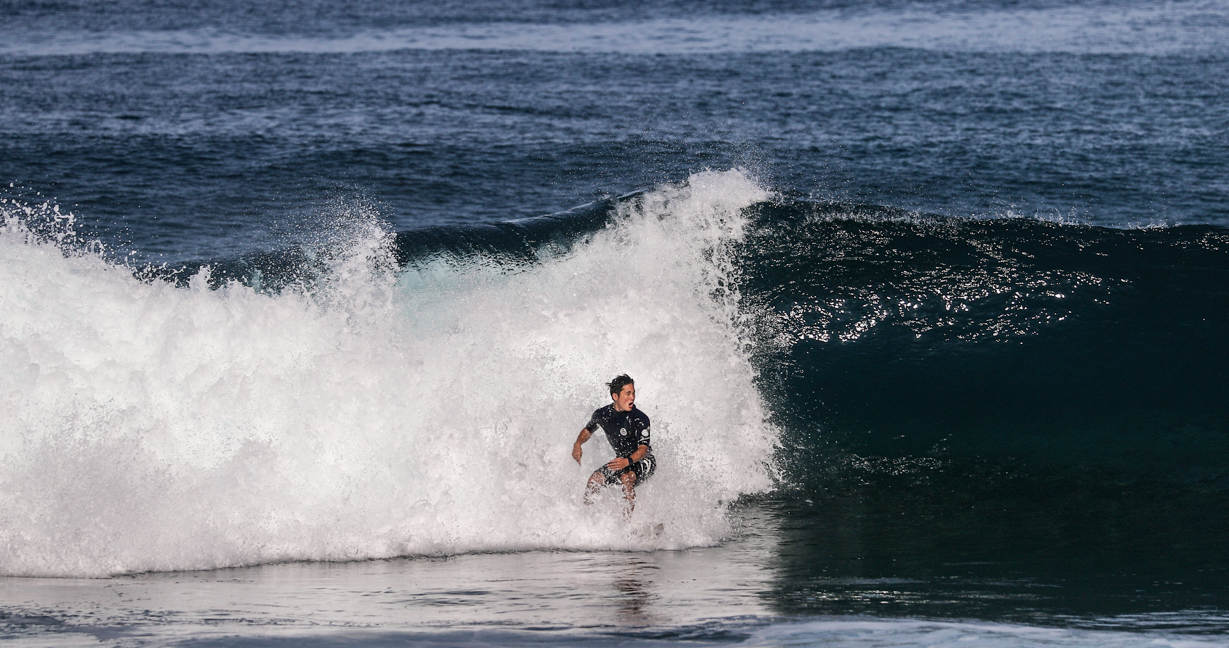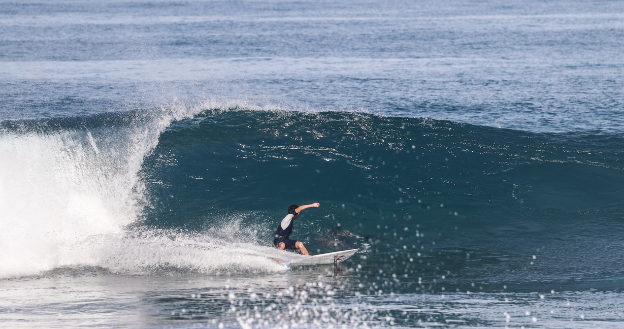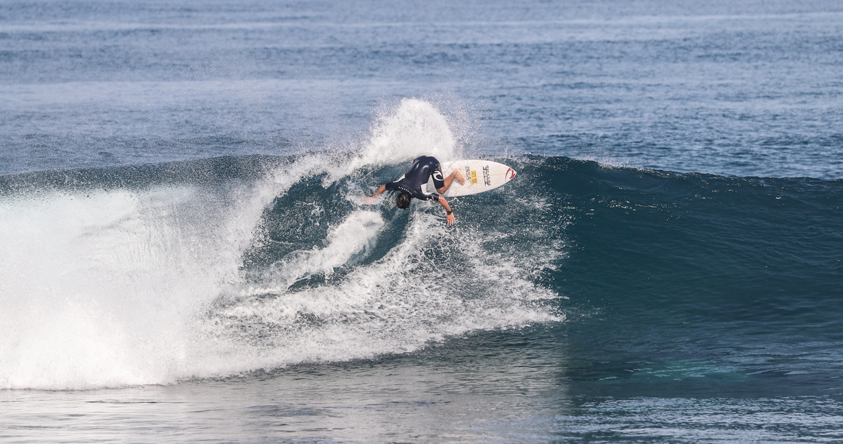 そんな彼がハワイで見せてくれた、まるでお手本のようなバックサイド・オフ・ザ・リップのシークエンスをお届け!!
