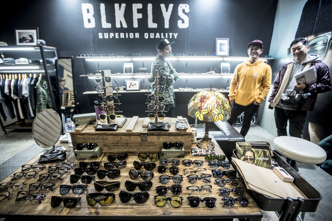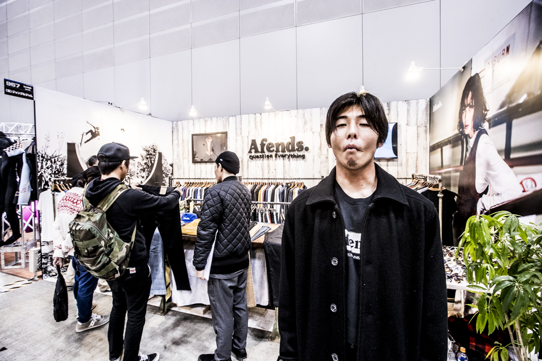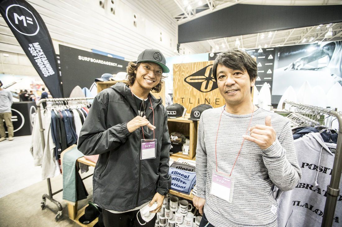 BLACK FLYSブースでは、colorsmagがいつもお世話になっているプロサーファー樋口賢に遭遇。