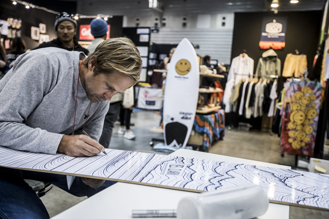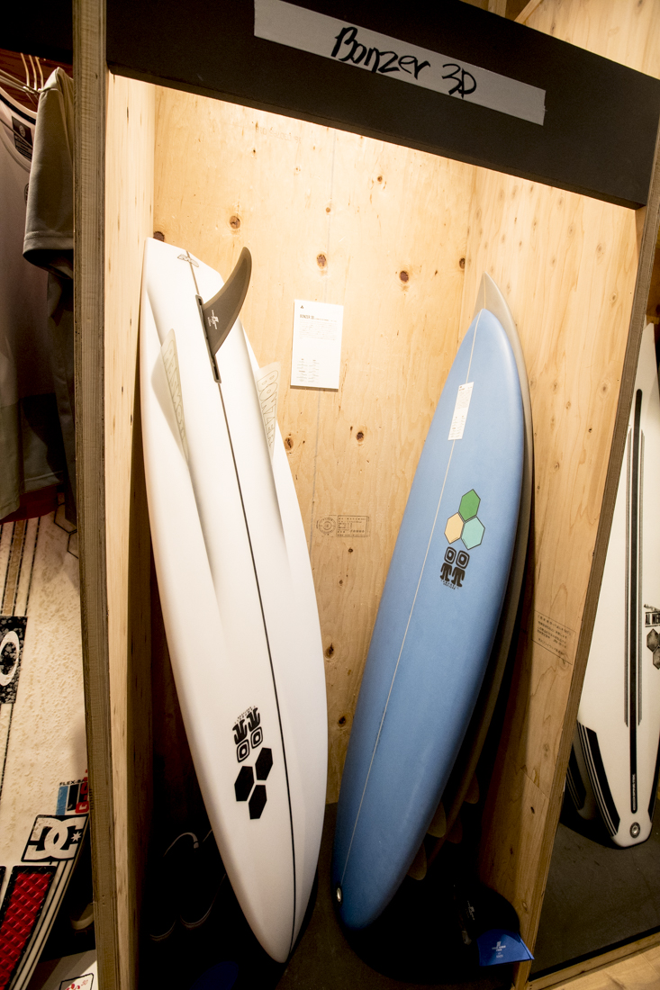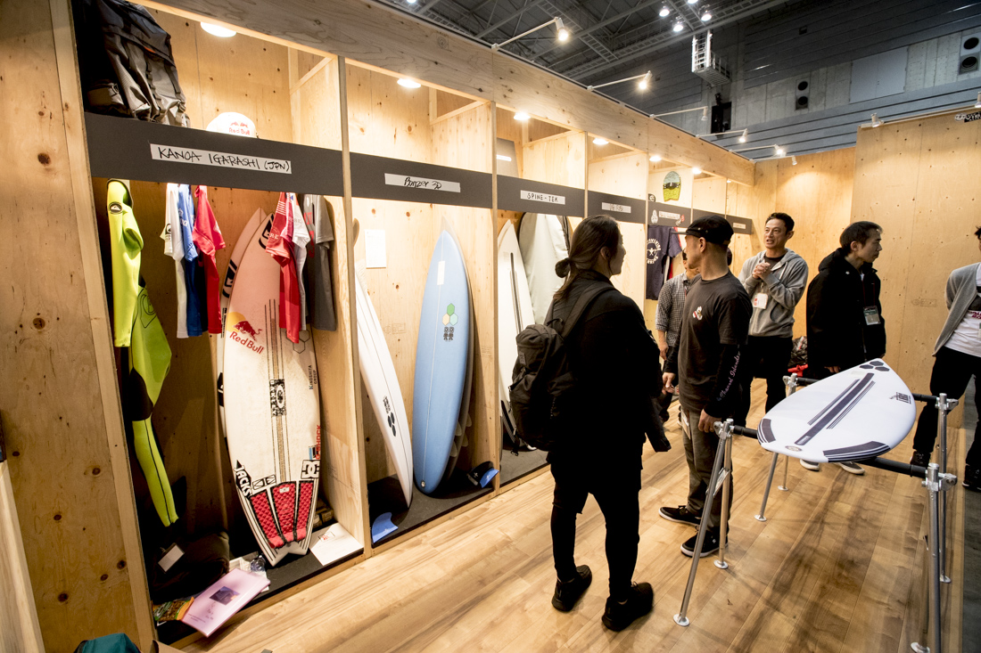 CI surfboardsのブースでは、CTサーファーのカノア五十嵐にちなんで、WSLの選手ロッカーを再現。