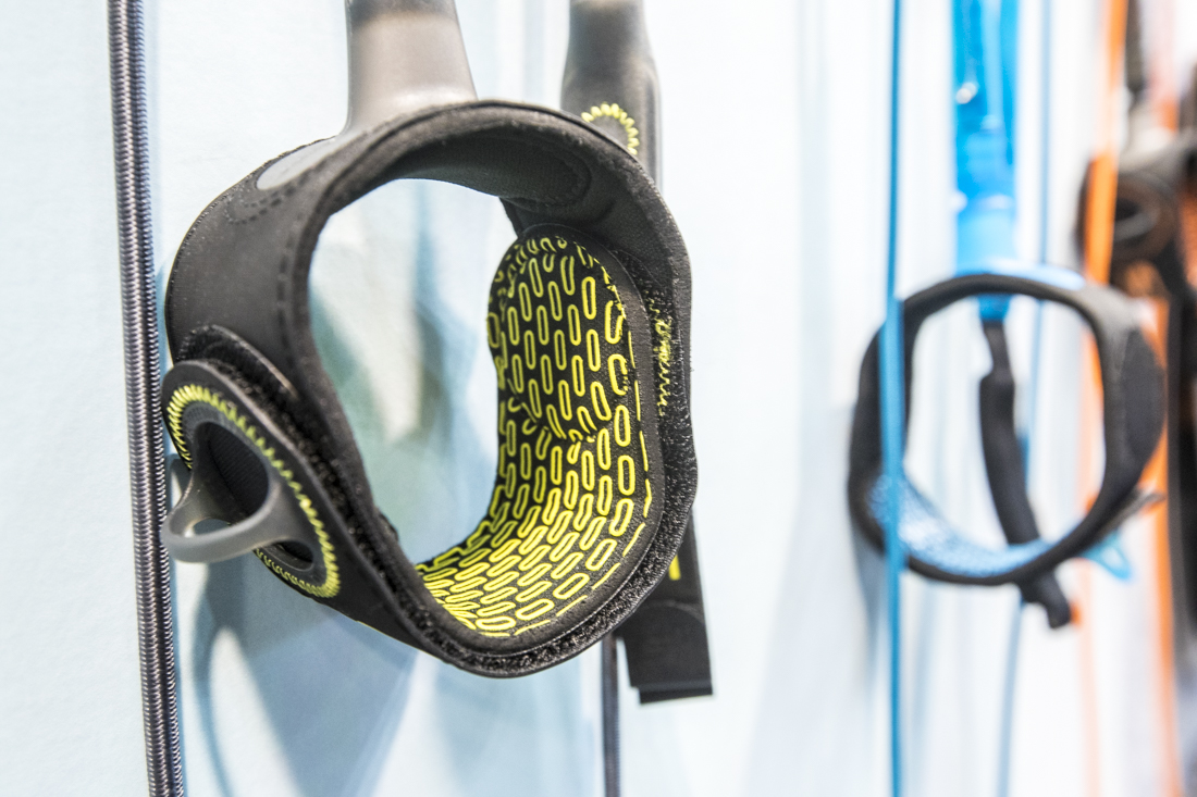 ・グリップの内側部分に楕円形のシリコングリップを無数に施したネオプレーンカフを採用。細く軽くなった上、滑らなくなったことから装着時に足首により高いフィット感を得られる。