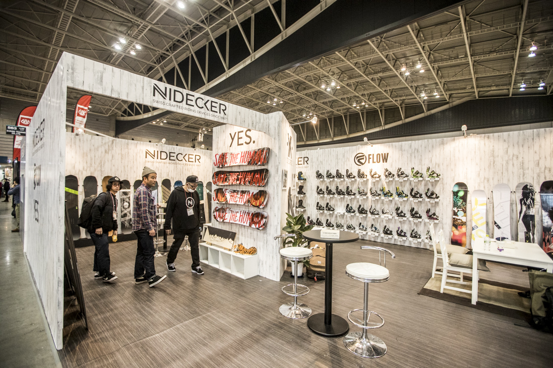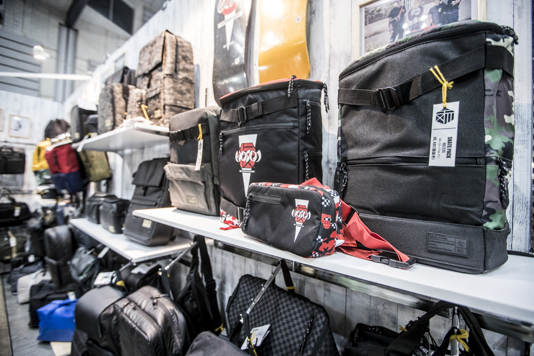 その向かいにどんと構えるのはyes snowboardsを主に、カリフォルニア発の注目の高品質バッグブランドHEXなどを取り扱うシュリロトレーディングのブースが。