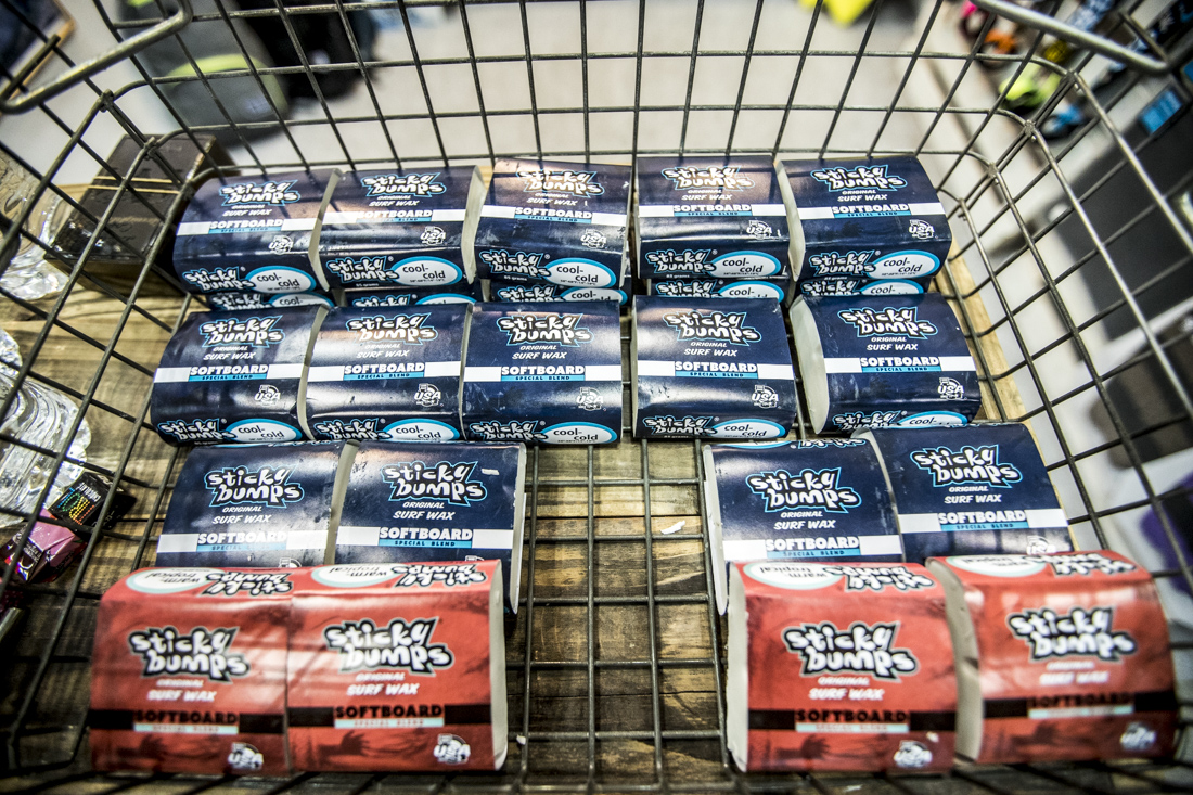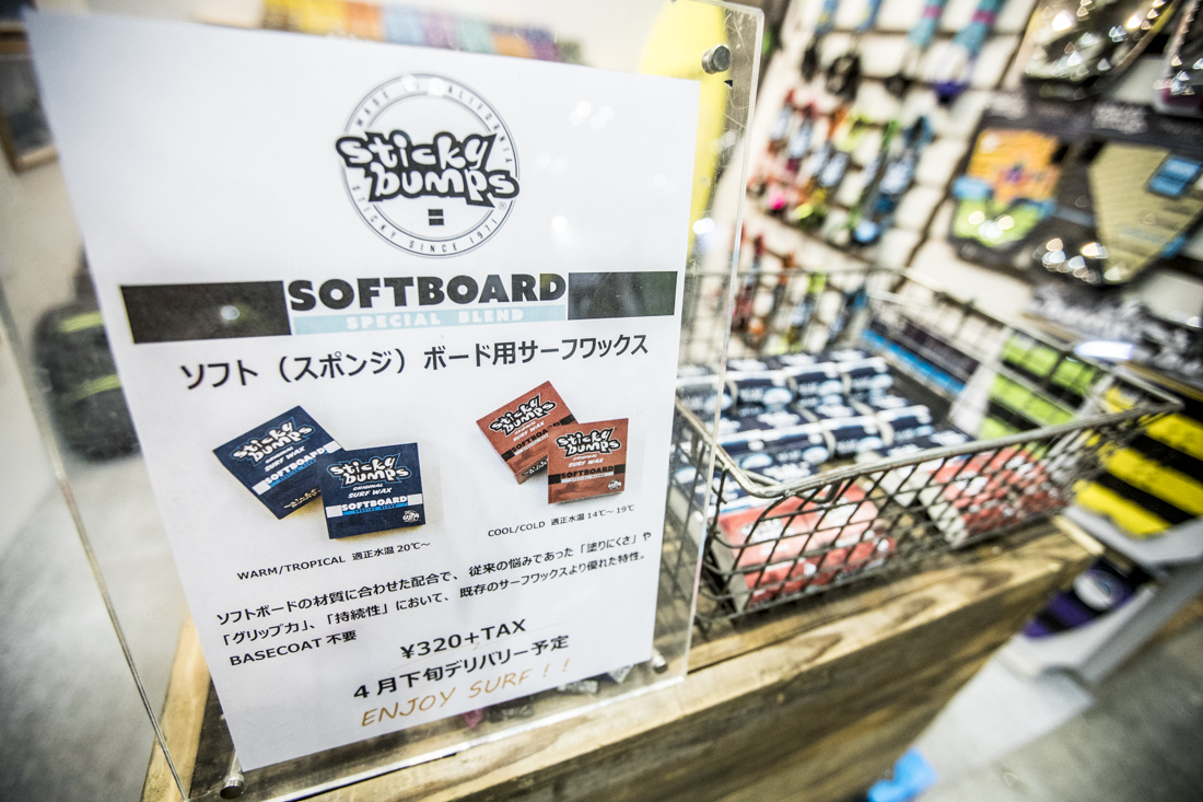長年愛され続けているサーフワックスのSticky Bumpsブースでは、なんとスポンジ製ソフトボード専用のワックスがリリース!