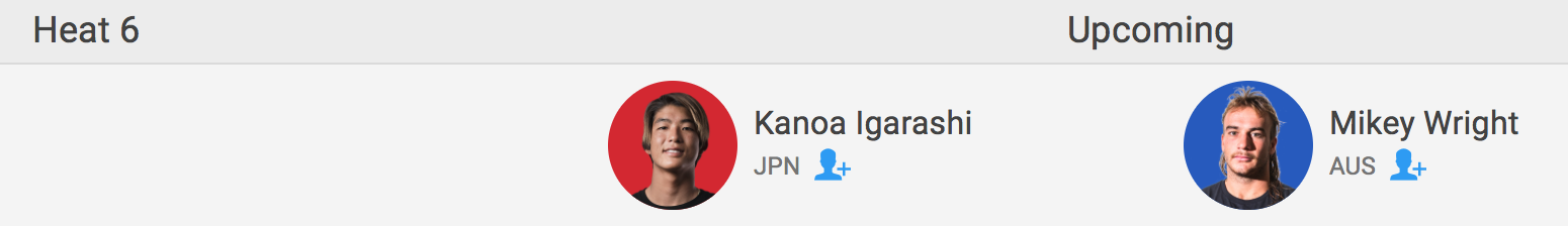 いよいよベスト16が顔を揃えたラウンド5では、カノア五十嵐がヒート6でMikey Wright(AUS)と対戦。