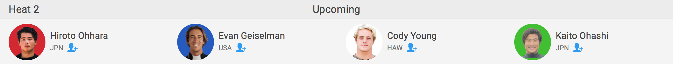 迎えるラウンド2では、大原洋人と大橋海人がヒート2でEvan Geiselman(USA)、Cody Young(HAW)と対戦。