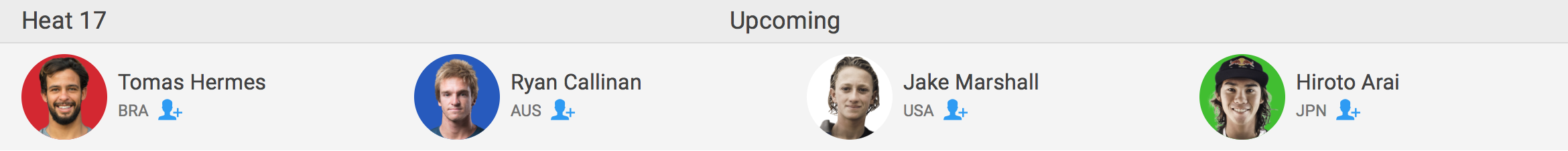 新井洋人はヒート17でTomas Hermes(BRA)、Ryan Callinan(AUS)、Jake Marshall(USA)と対戦。