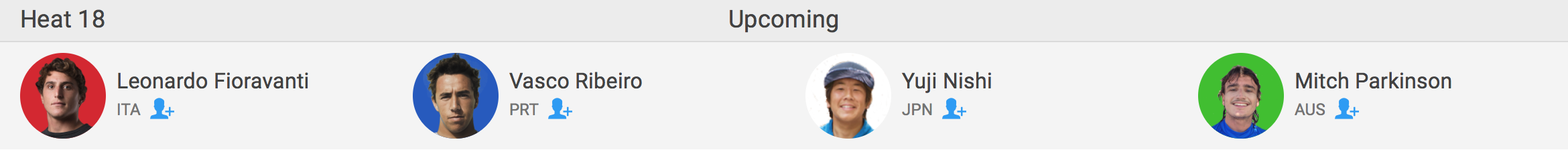 続くヒート18では西優司がLeonardo Fioravanti(ITA)、Vasco Ribeiro(PRT)、Mitch Parkinson(AUS)と対戦予定となっている。