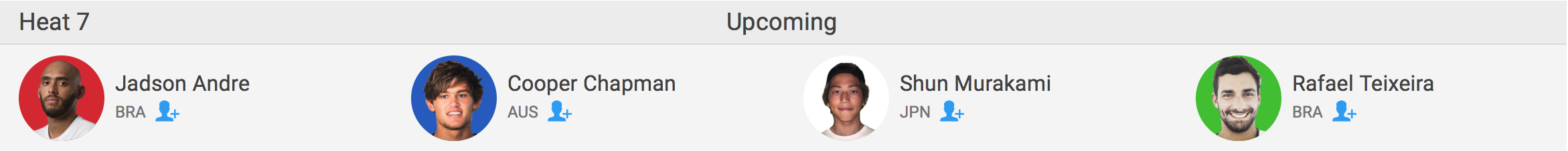 続くヒート7には村上舜が、Jadson Andre(BRA)、Cooper Chapman(AUS)、Rafael Teixeira(BRA)と対戦。