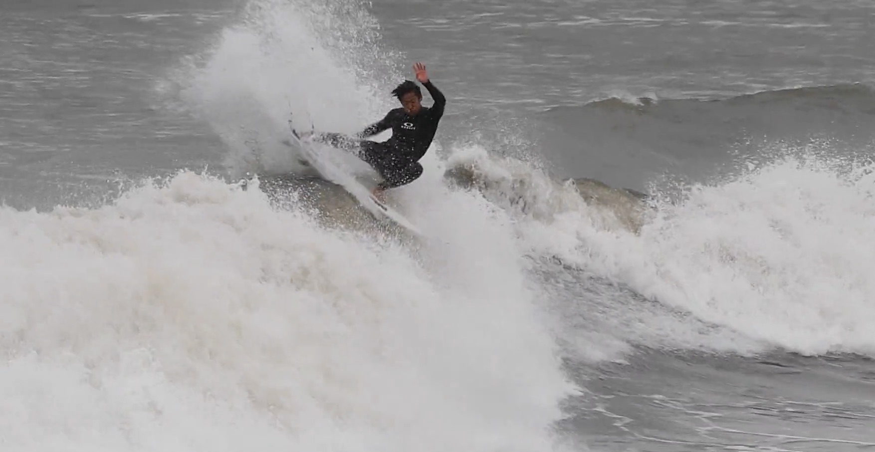 前日の夕方からサイズアップしはじめ、早朝はオンショアを受けた頭オーバーとなったが、夕方には風が変わり、比較的クリーンな頭前後の波に恵まれた3/9(金)。