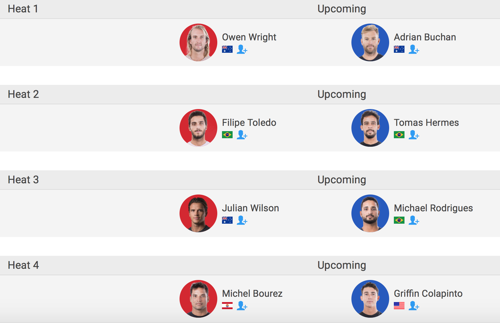 Joel Parkinsonを下して勢いに乗る期待のルーキーGriffin Colapinto(USA)は迎えるクォーターファイナルのヒート4でMichel Bourez(PYF)と対戦予定。
