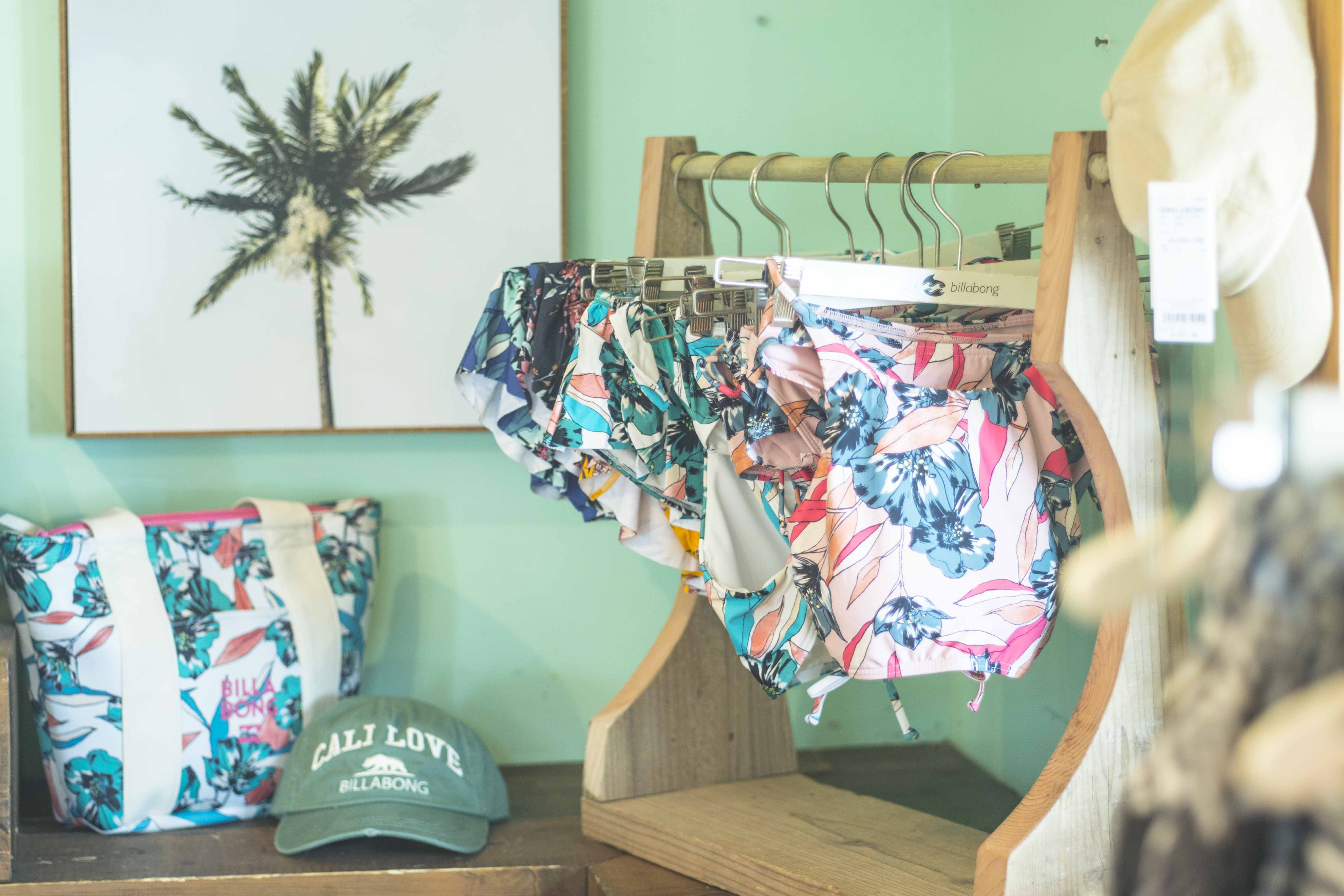 心地よい潮風を感じるオシャレな店内には、水着をはじめサンダル、洋服、アクティブウエアなど多彩なバリエーションでラインナップ!