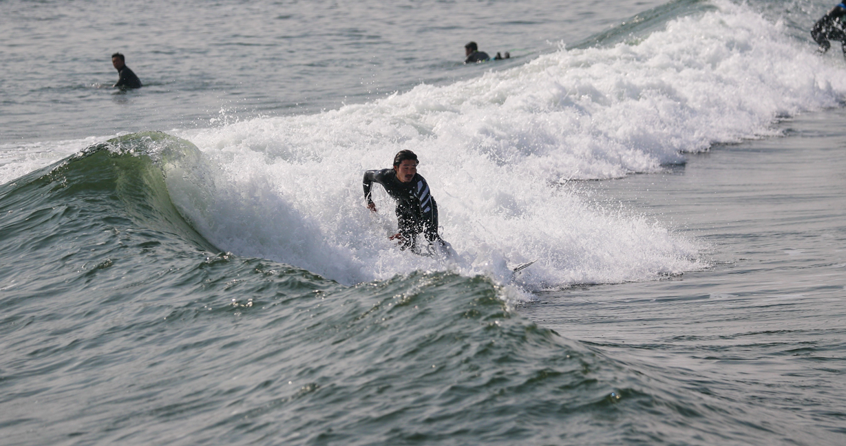 2006年と2011年の2度に渡ってグランドチャンピオンに輝いた経歴を持ち、未だ現役トッププロサーファーとして、ライディングはもちろん、エンターテイメント性の高いトークでいつも会場を湧かせてくれる田中英義!