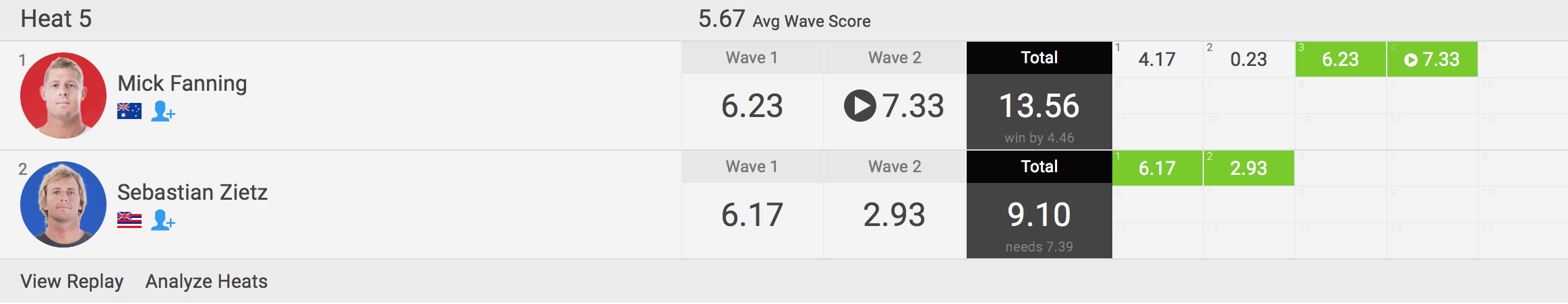 迎えるラウンド4のヒート2ではMatt Wilkinson(AUS)、Pat Gudauskas(USA)と対戦。