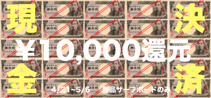さらに4/21(土)から5/6(日)の期間限定で、新品サーフボードをお買い上げのお客様に現金1万円還元&STANDARD FILM DVDプレゼント・キャンペーンを実施中!!