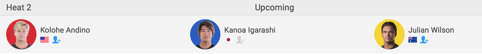 クォーターファイナル進出を懸けたラウンド4ではヒート2でKolohe Andino(USA)、Julian Wilson(AUS)と対戦予定。