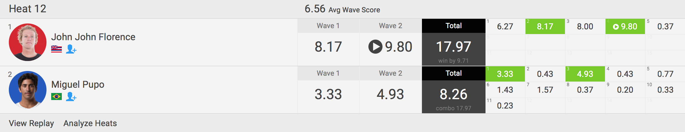 さらに要チェックなのはラウンド3のヒート12で2×ワールドチャンプのJohn John Florenceが魅せたフロントサイドのエアリバース1発でマークした9.80pt!