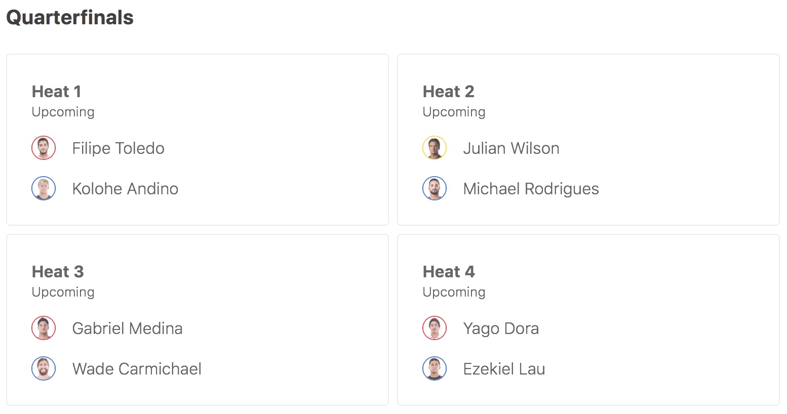逆転を狙うカノアが3本目にセットの波を掴むも、トリッキーなインサイドセクションに手こずり、5.60ptといまひとつスコアを伸ばせず、さらに5,73ptでバックアップをまとめるJulian Wilsonと先手必勝の作戦が功を奏したKolohe Andinoの2名に軍配が上がってしまった。