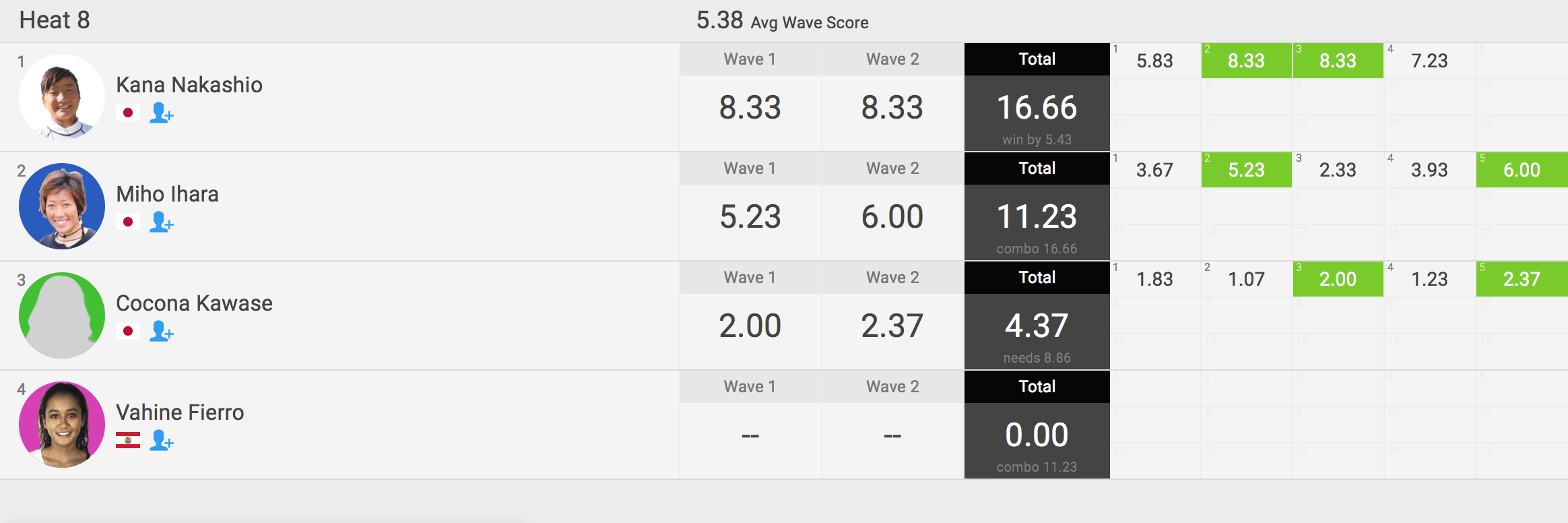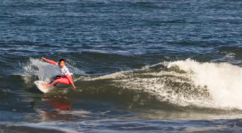 多くの日本人選手がラウンド2へと駒を進めた中、最終ヒートに出場した中塩佳那が8.33ptのエクセレントスコアを2本叩き出し、トータルスコア16.66ptとWOMENSラウンド1でベストスコアをマーク!