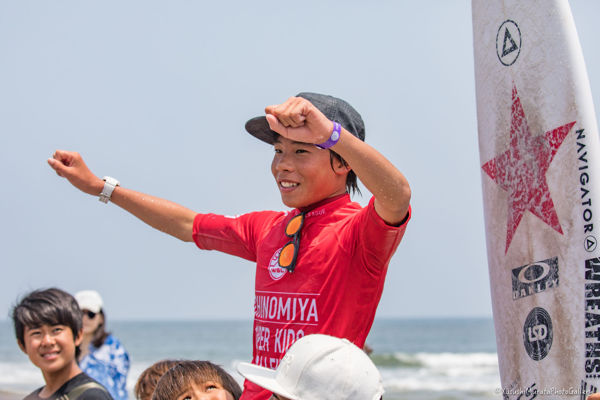 逆転を狙う長沢侑磨も8本目で7.10pt、9本目の波で5.50ptとヒート後半に激しい追い上げをみせるもあと一歩及ばず、岩見天獅が初開催となった志田下でのSuper Kids Challengeを制した!
