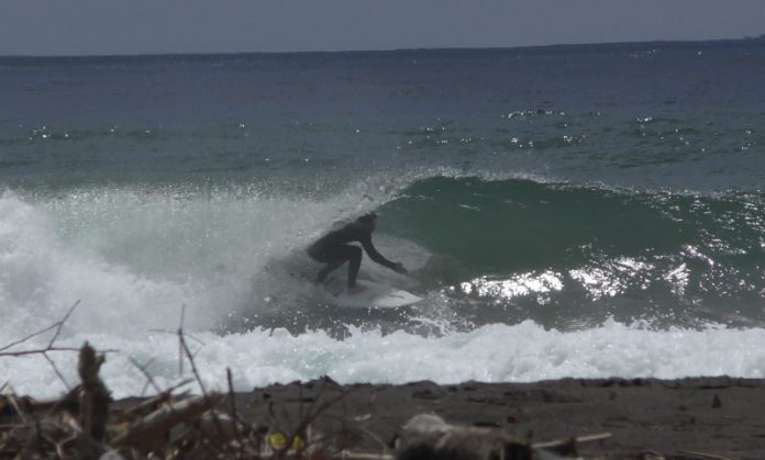 低気圧が通過した波を狙い、鴨川へと車を走らせた茅ヶ崎出身の脇祐史。