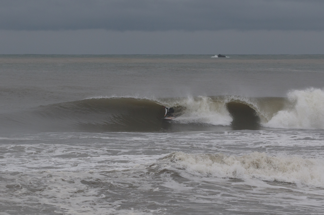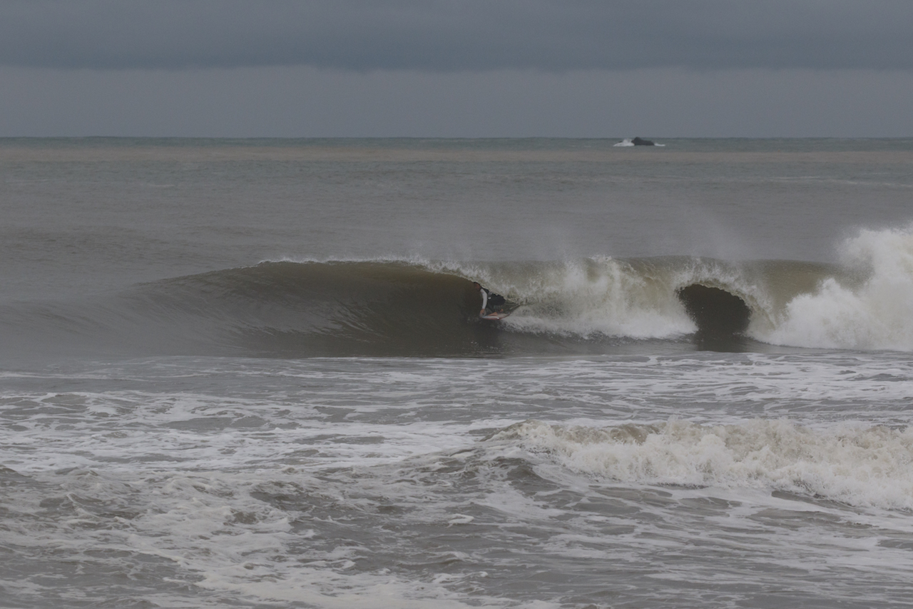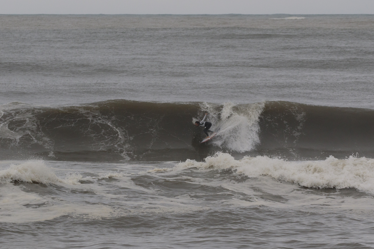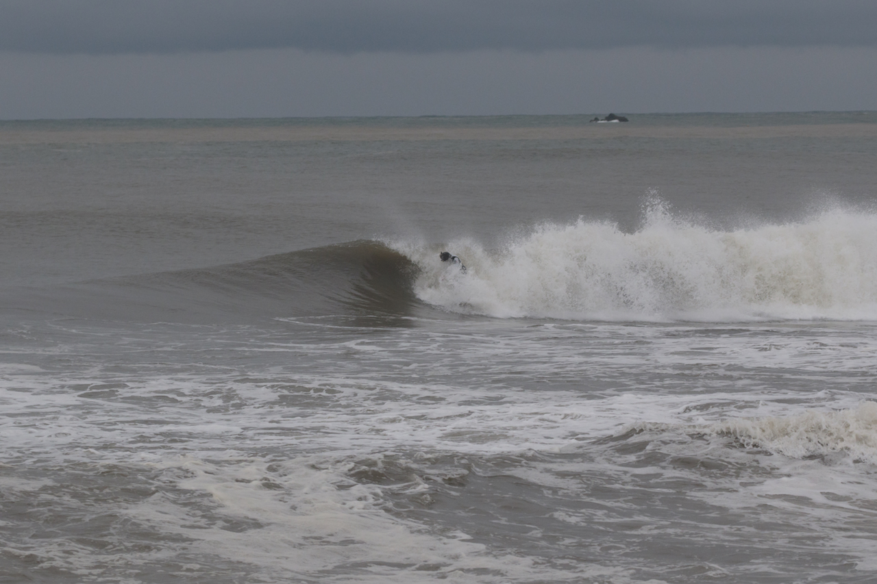 Grand point is one of the trickiest waves in Kamogawa area. It always looks good from the parking lot and it allures you into the lineup. But once in the lineup, Grand always turns against you. Perfect barrels are always just 5 meters too far to the left or right. As the tide rises or drops, the wave shifts quickly, making you search for the take off zone. But there is that gem out there. And as a surfer, we need to get it! Yukio spent 2 hours searching, taking off on everything he could paddle into. But in the end, once again, Grand was the winner.