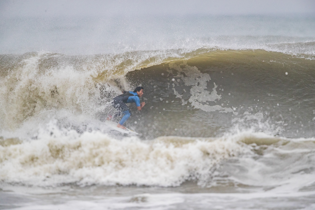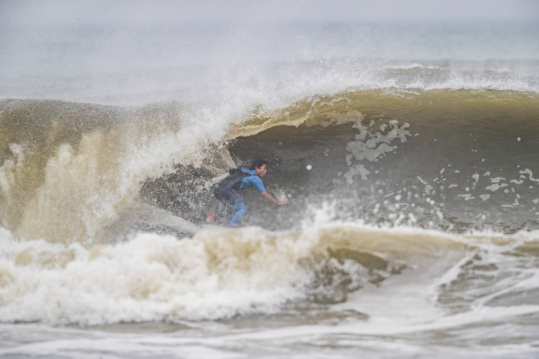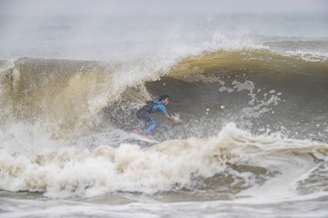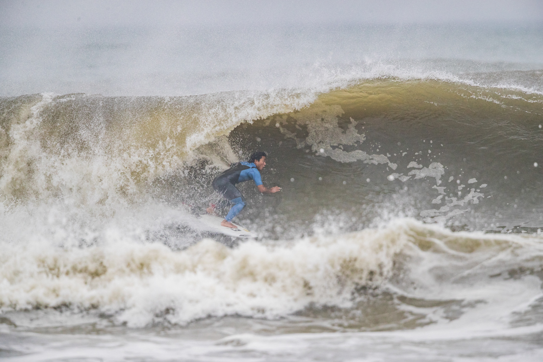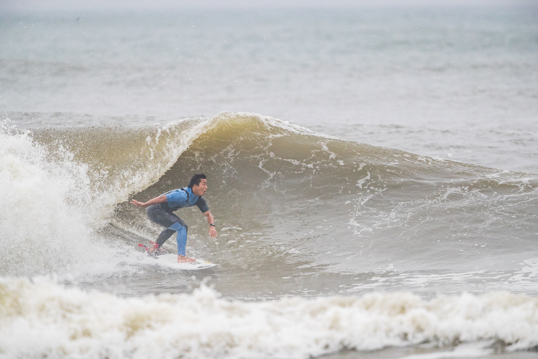 宮崎出身、現在は千葉を拠点とするパワフルなサーフィンを信条とする渡辺寛。