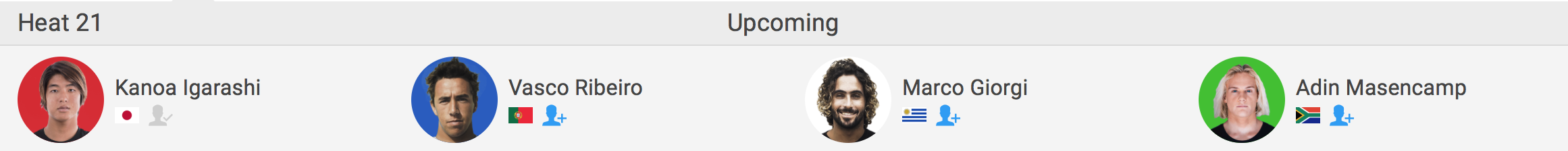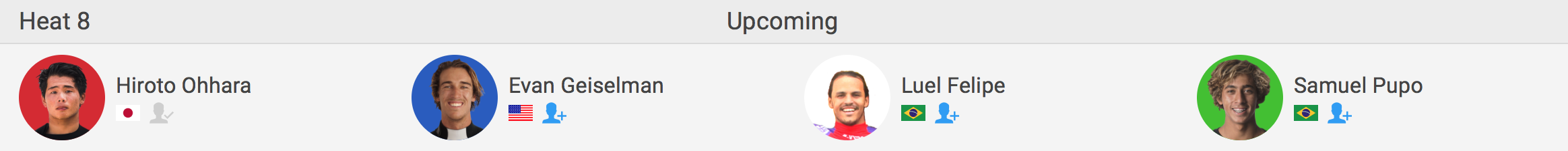 迎えるラウンド3のヒート8ではEvan Geiselman(USA)、Fuel Felipe(BRA)、Samuel Pupo(BRA)と対戦予定。