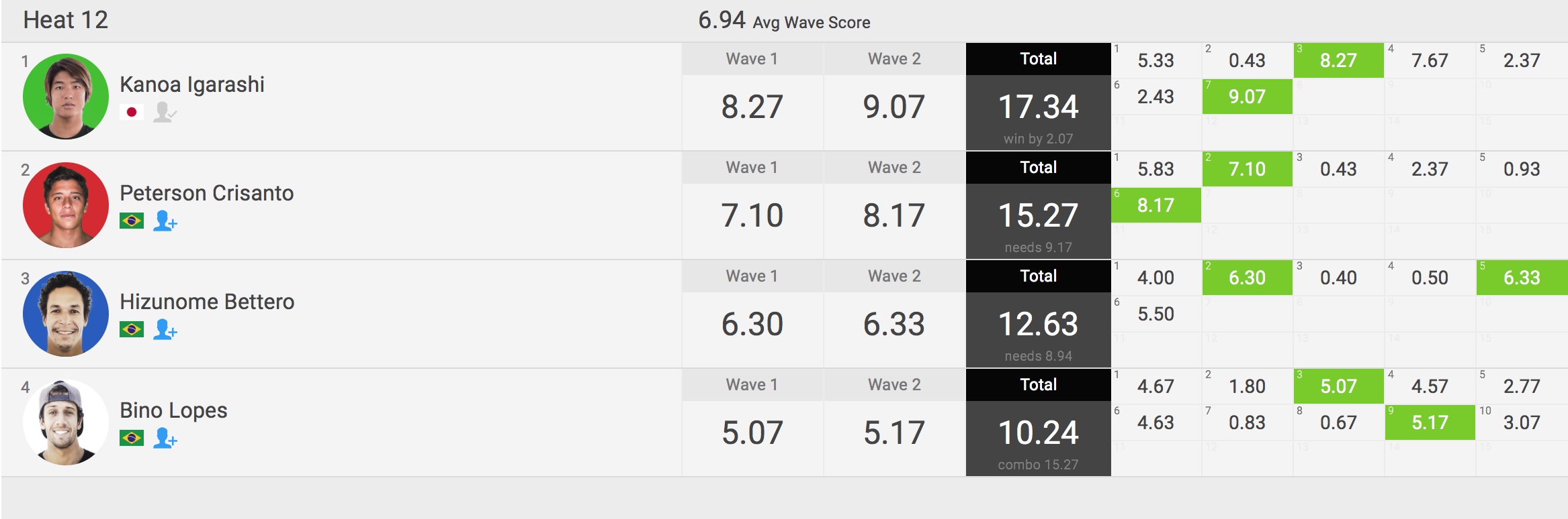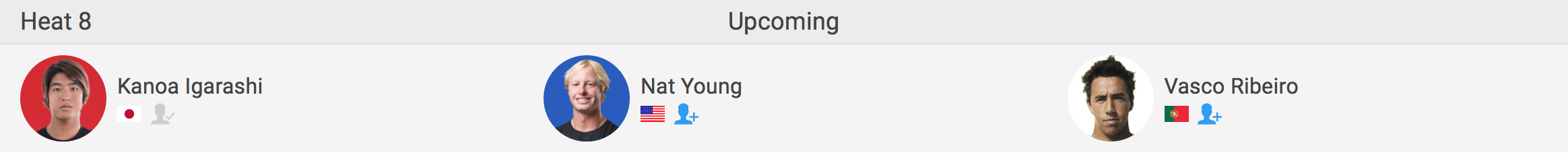 ラウンド4のヒート8に出場予定のカノア五十嵐は元CTサーファーのNat Young(USA)とVasco Ribeiro(PRT)と対戦することとなっている。