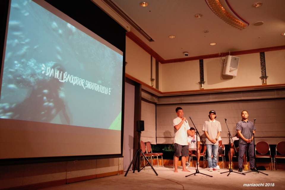 日本が誇る水中サーフィンフォトグラファーの神尾光輝氏によって撮影された”DA HUI Backdoor Shootout 2018” での素晴らしい数々の貴重な写真によるスライドトークショーが行われた。水中カメラマンから見た今大会の迫力あるライディングショットや大会の裏側、その写真1枚1枚に沢山詰まった思い、大野Mar修聖、堀口真平、松岡慧斗のコメントも交えた日本代表チームのライディングショット、そしてカメラマンだからこそ見えてくるその瞬間の1枚のストーリーを感じることができ”DA HUI Backdoor Shootout 2018” を更に奥深く知ることの出来る素晴らしいものとなった。