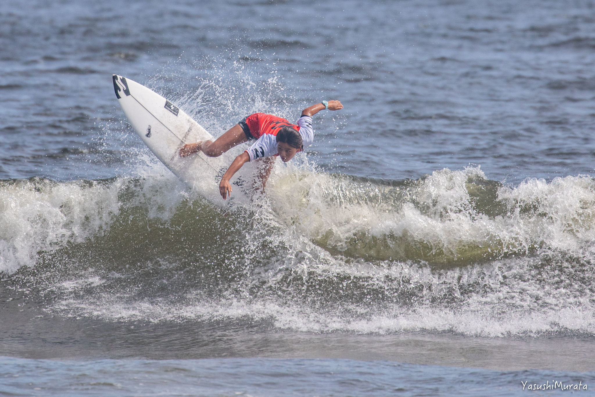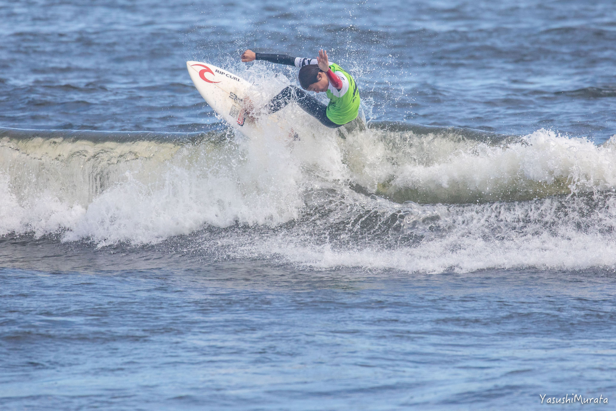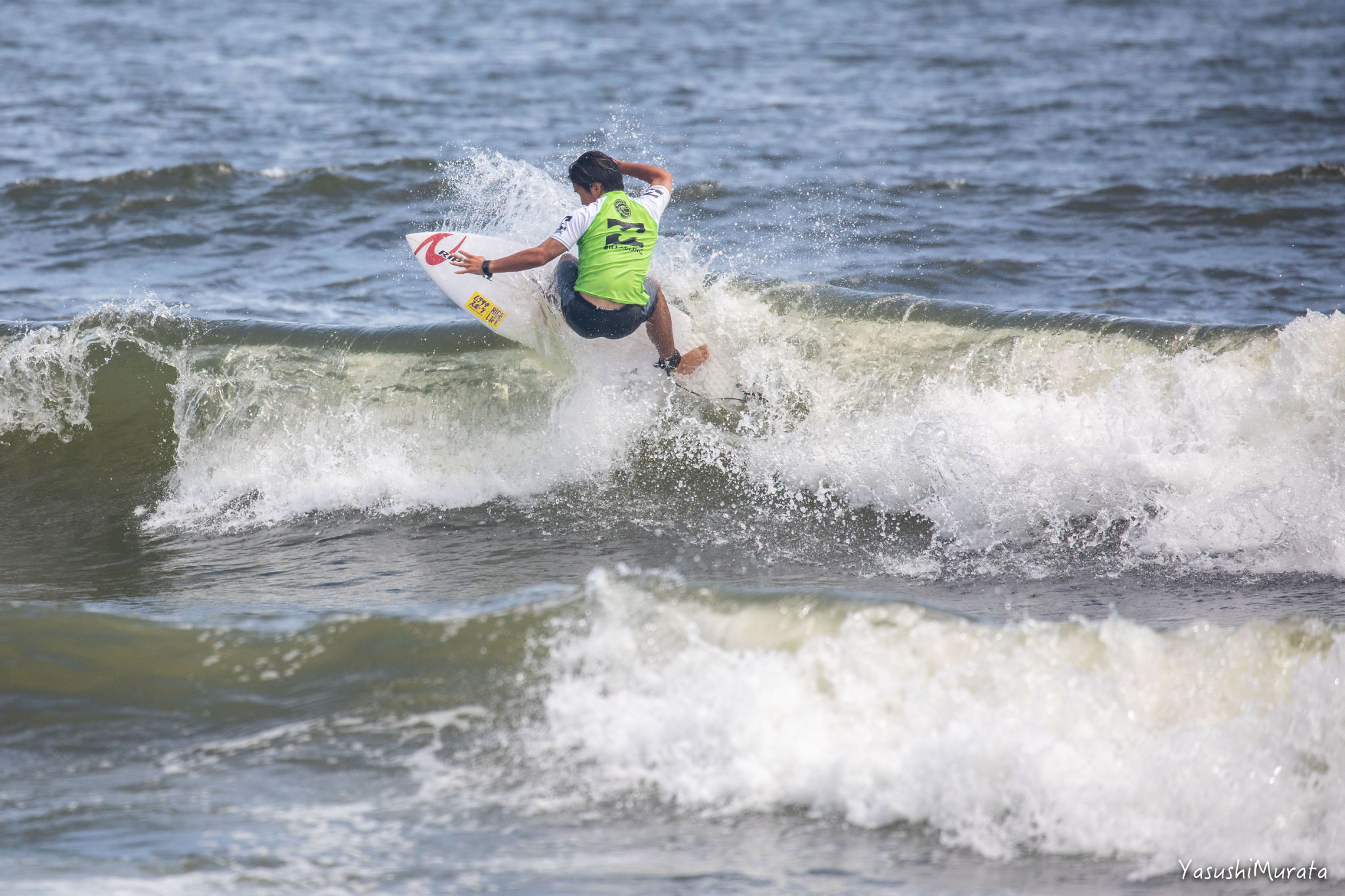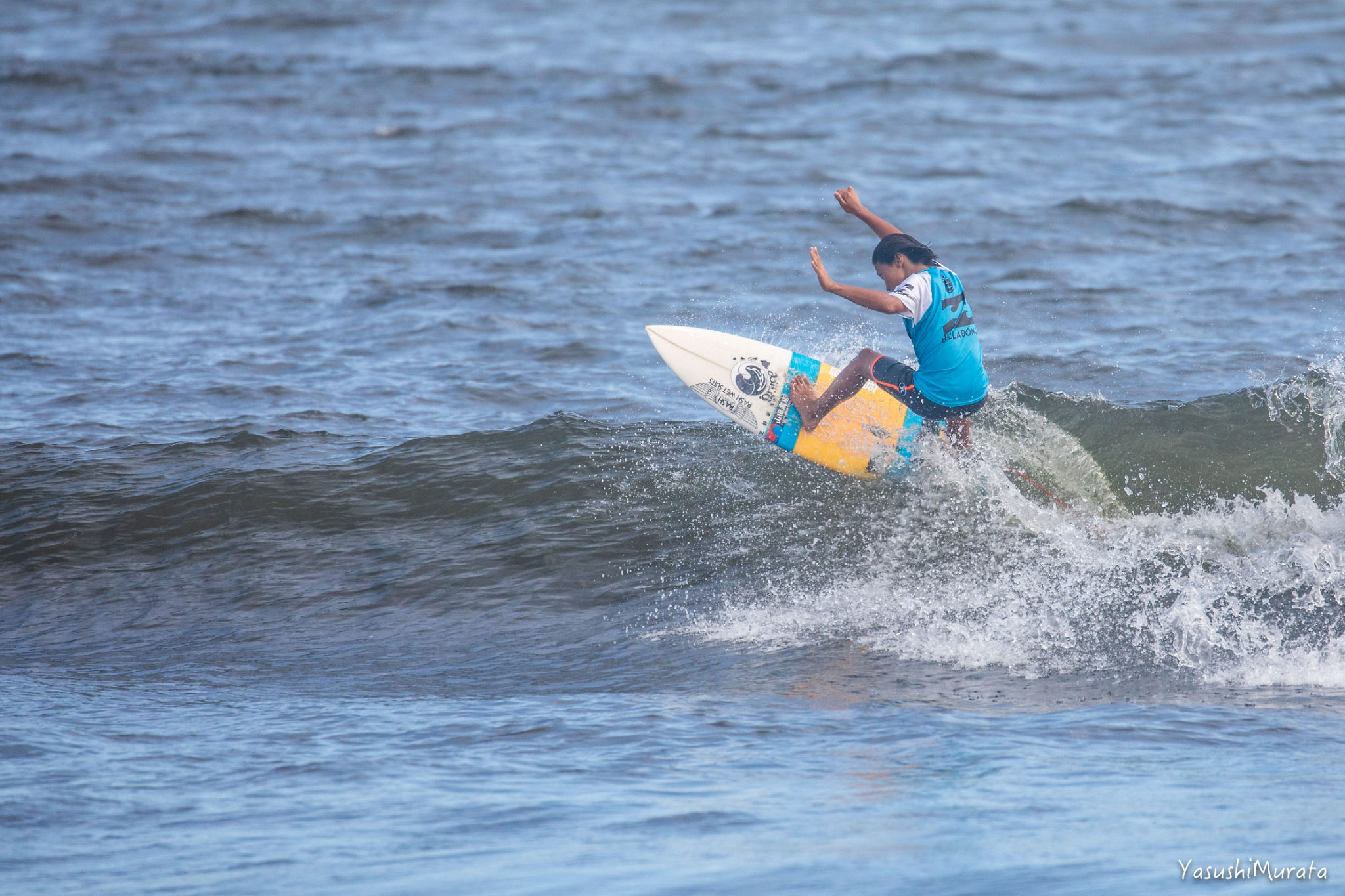 スタイリッシュかつ玄人好みなサーフィンを武器とする村田嵐。今回は実力発揮まで至らず、悔しくも2位に甘んじた。Cadet 2nd, Arashi Murata.