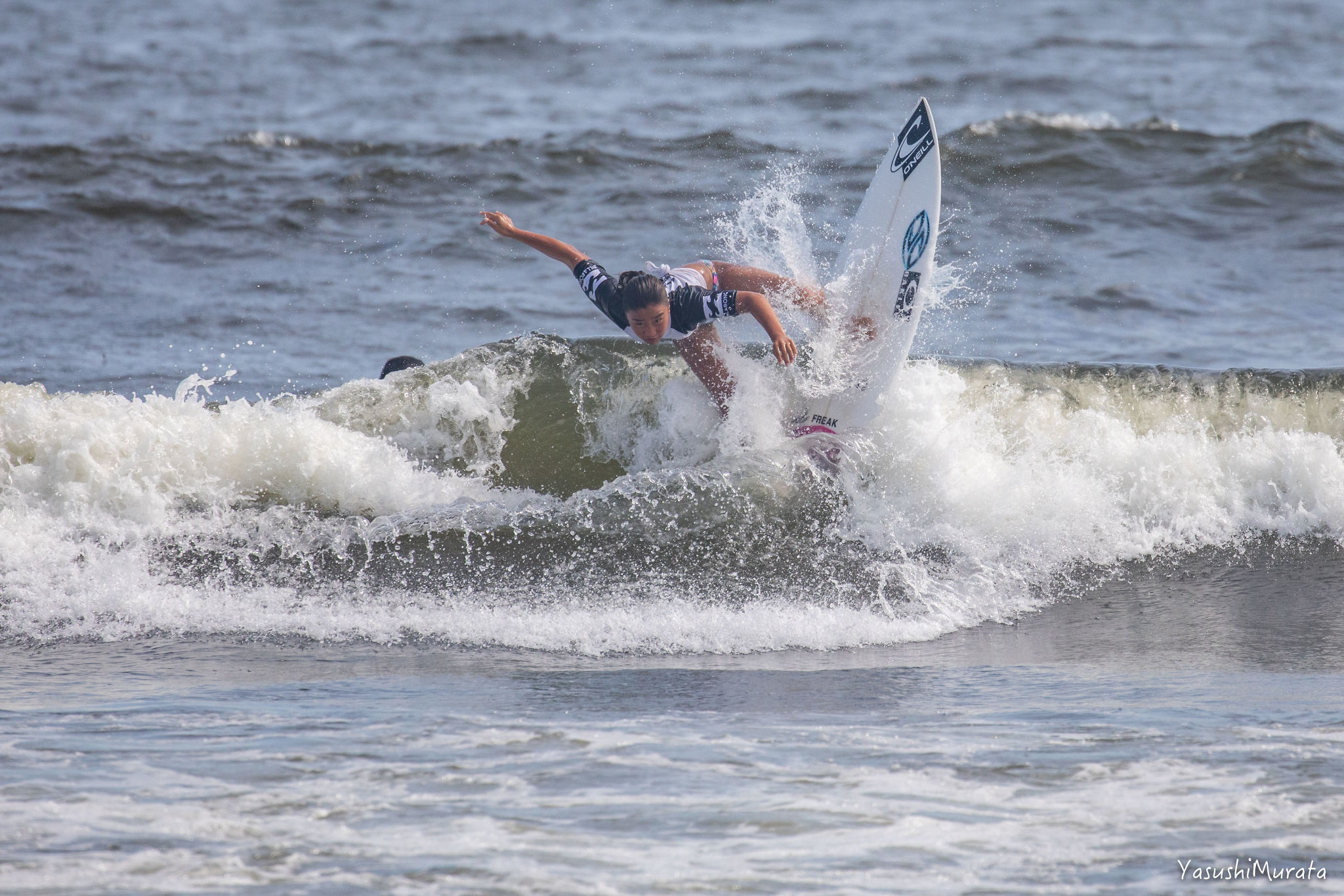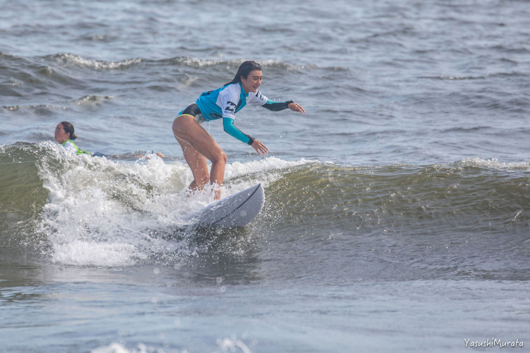 ファイナルではいい波をつかむことができず、自分らしいサーフィンを出し切ることができなかったであろう馬庭彩。簡単そうで意外と難しい、されど頭で考えると余計わからず、海を感じるまま感覚的にいい波を掴めるようにさえなればさらに勝率を上げてくるに違いない実力派。Girls 4th, Sai Maniwa.