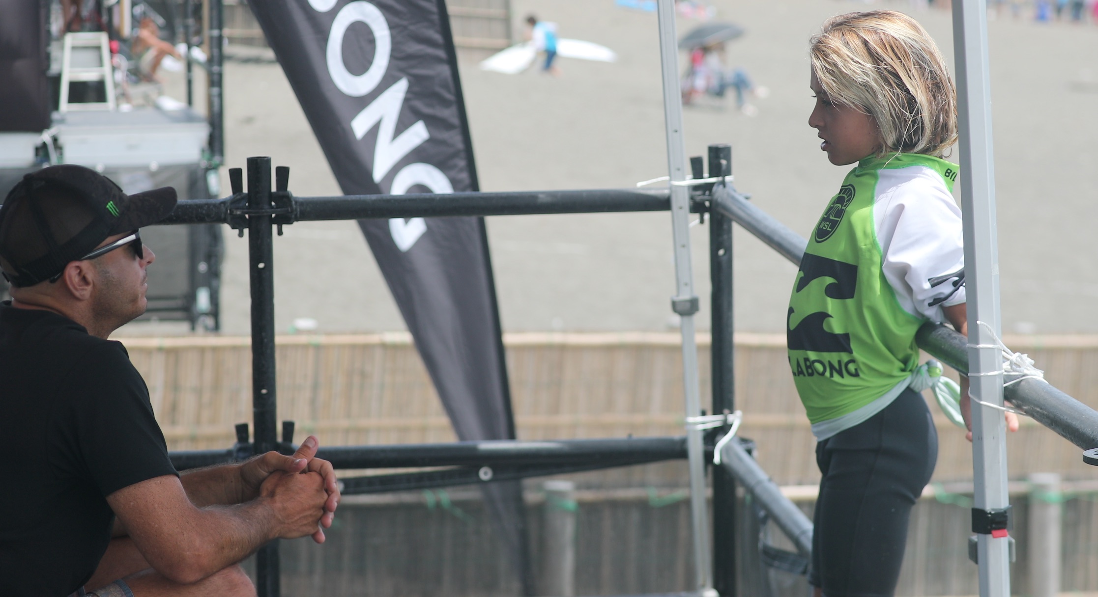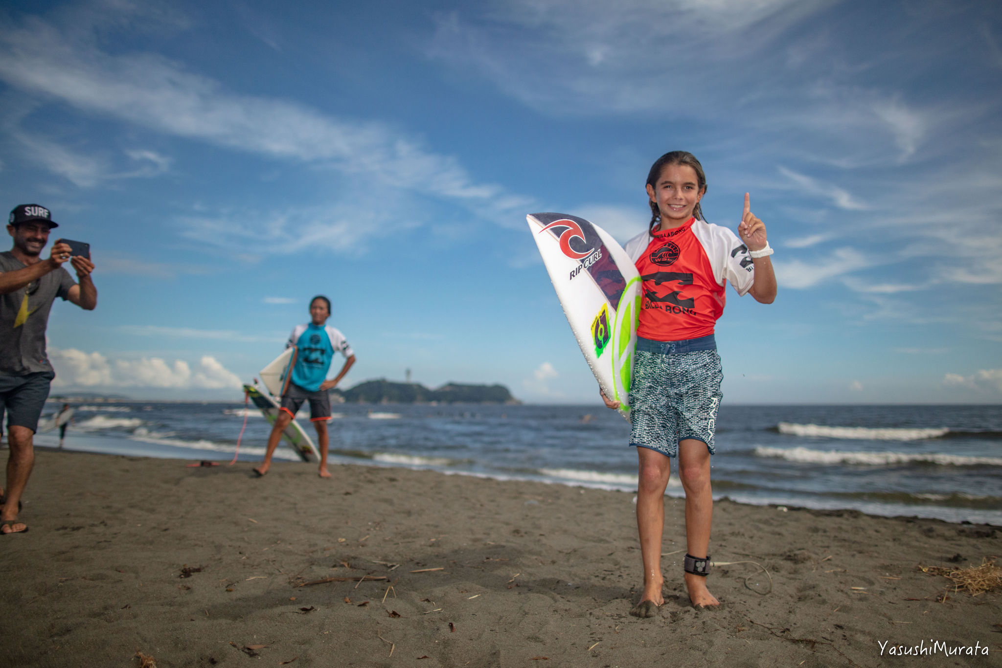 本ビッグイベントを応援するべく、BILLABONG BLOODシリーズなどのキッズ育成プロジェクトに余念のないBILLABONGのアイコン的存在のひとりであり、ビッグウェイブ・ワールドチャンプでもあるShane Dorianが息子のJacson Dorianと共に来場を果たした中、波はゆるいオンショア混じりの膝前後のスーパースモールコンディションでスタート。