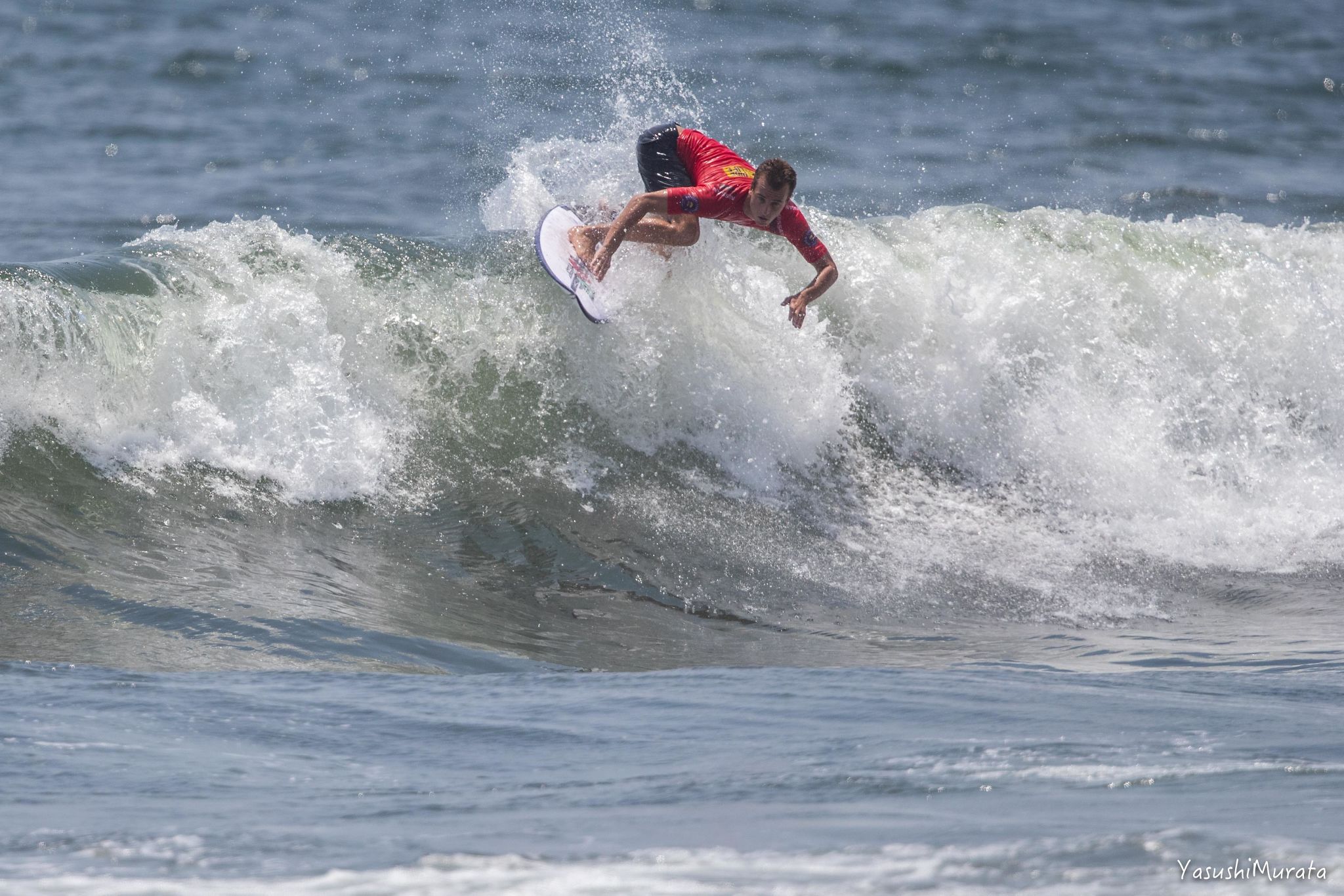 残り20分に差し掛かった頃にJordan Lawlerがバックサイドでターンを連発するライディングで5.10ptをスコアするも、安室が2本目の波で3.85ptでリードを保つ。