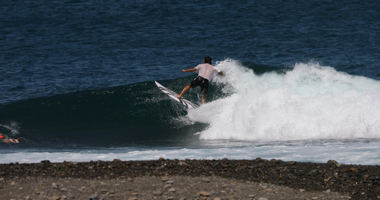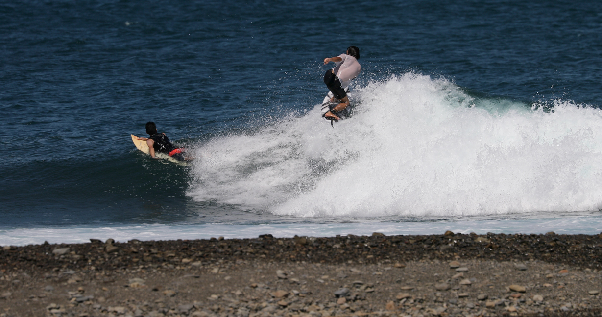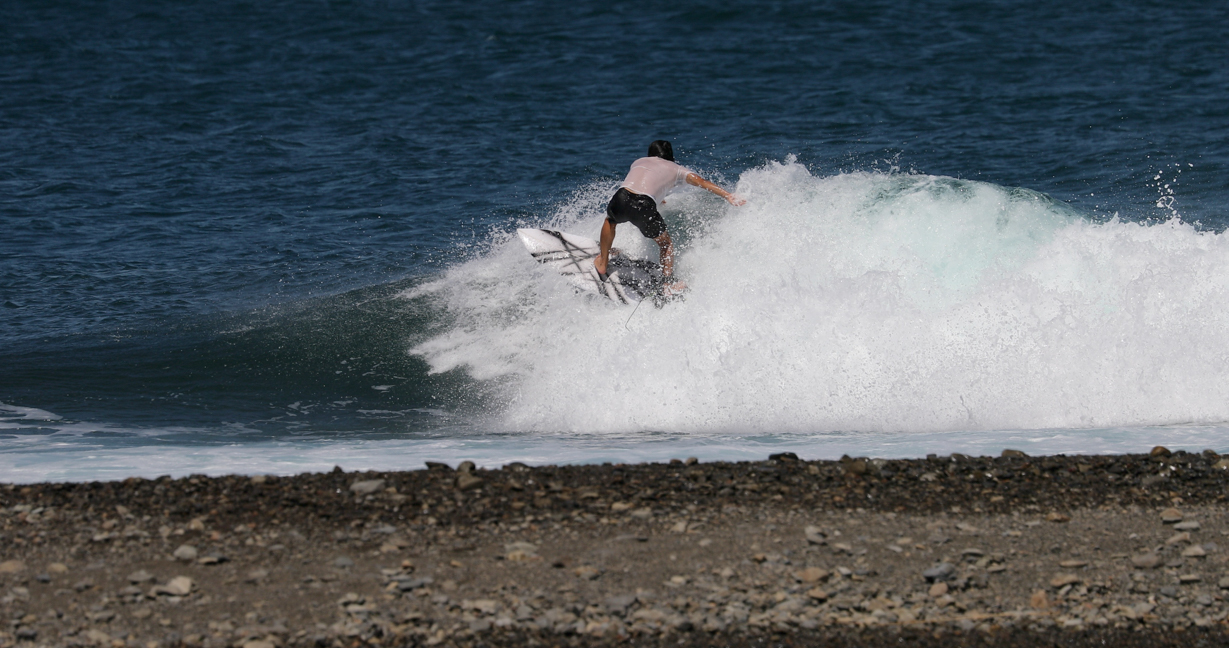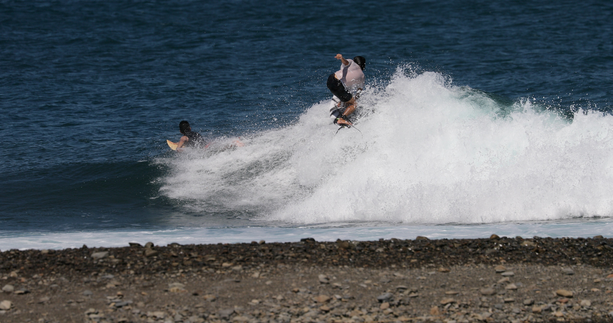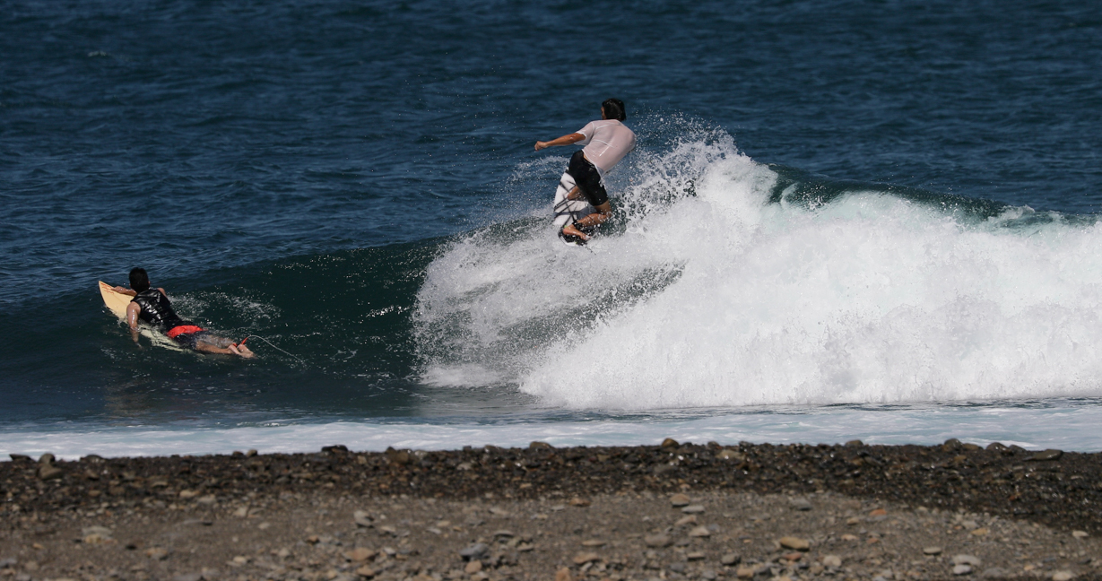 そんなスケートボードの中でも、サーファーの心をくすぐるフロントサイド・ロックンロールを、京都出身のスタイリッシュなフリーサーファー間屋口峻英プロが台風10号のゆるいグランドスウェルでサイズアップした台風波の上で再現!