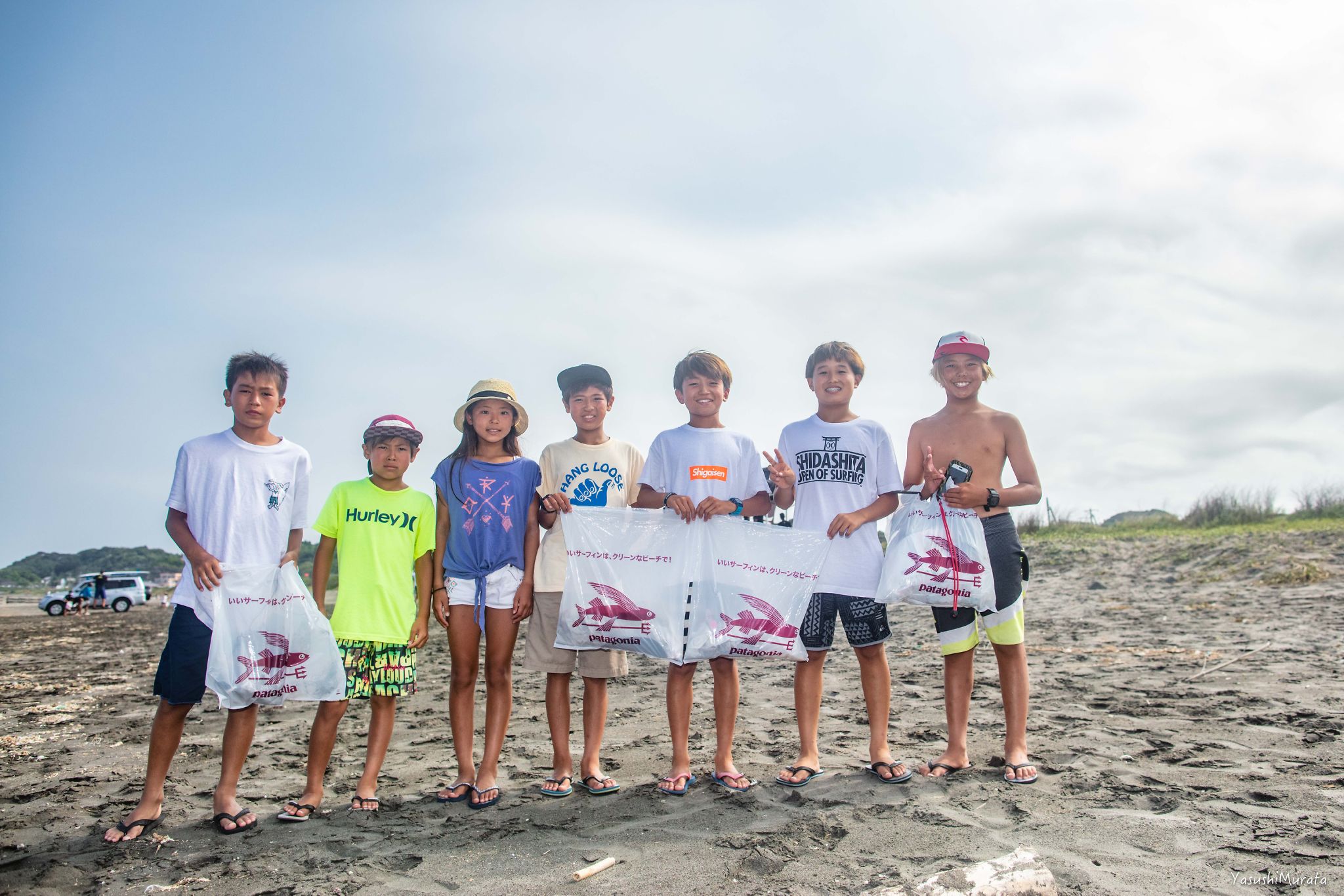 表彰式が行われる前にはビーチクリーンも実施。自分たちがサーフィンを楽しむフィールドである海に感謝。BEACH CLAEN.