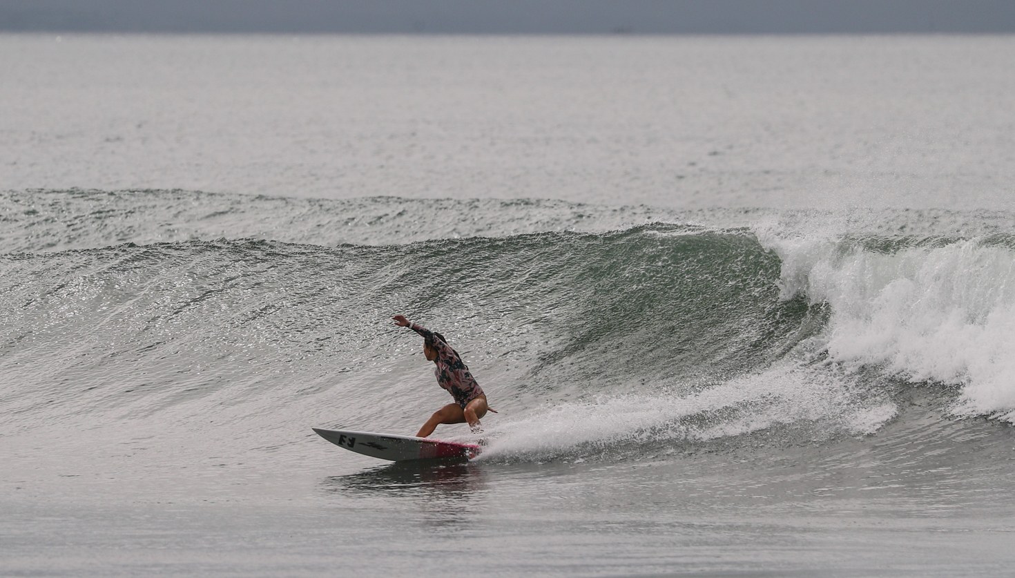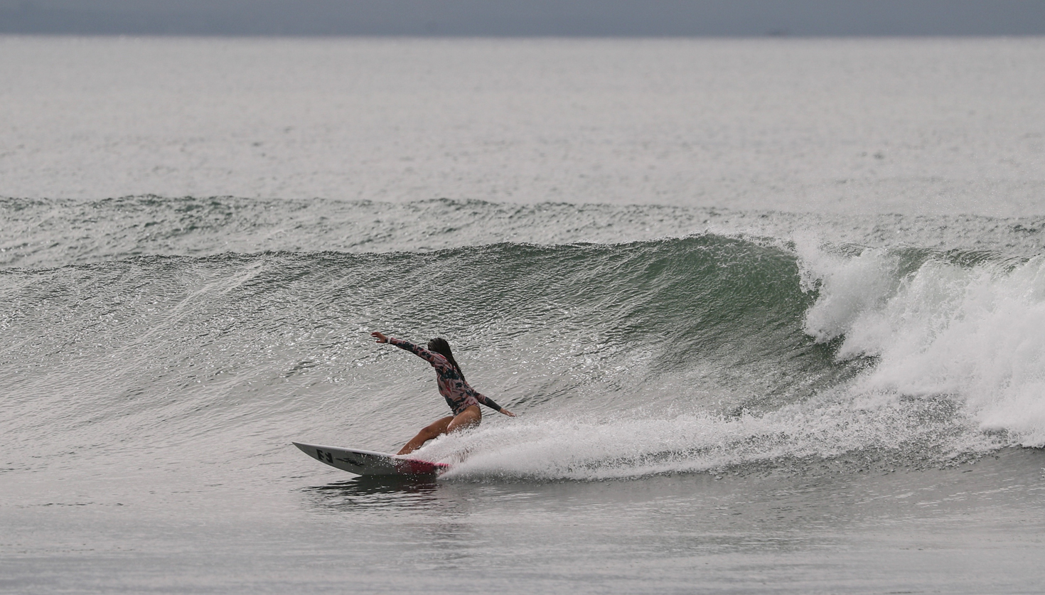 その代表的存在のひとりであり、2020年東京オリンピックの日本代表候補選手としても有力視される松田詩野が、台風19号のグランドスウェルで頭前後のグッドコンディションとなった8/20(月)早朝のフリーセッションでみせてくれた深いボトムターンからの、S字トラックが綺麗過ぎるバックサイド・リッピングのシークエンスをお届け!!