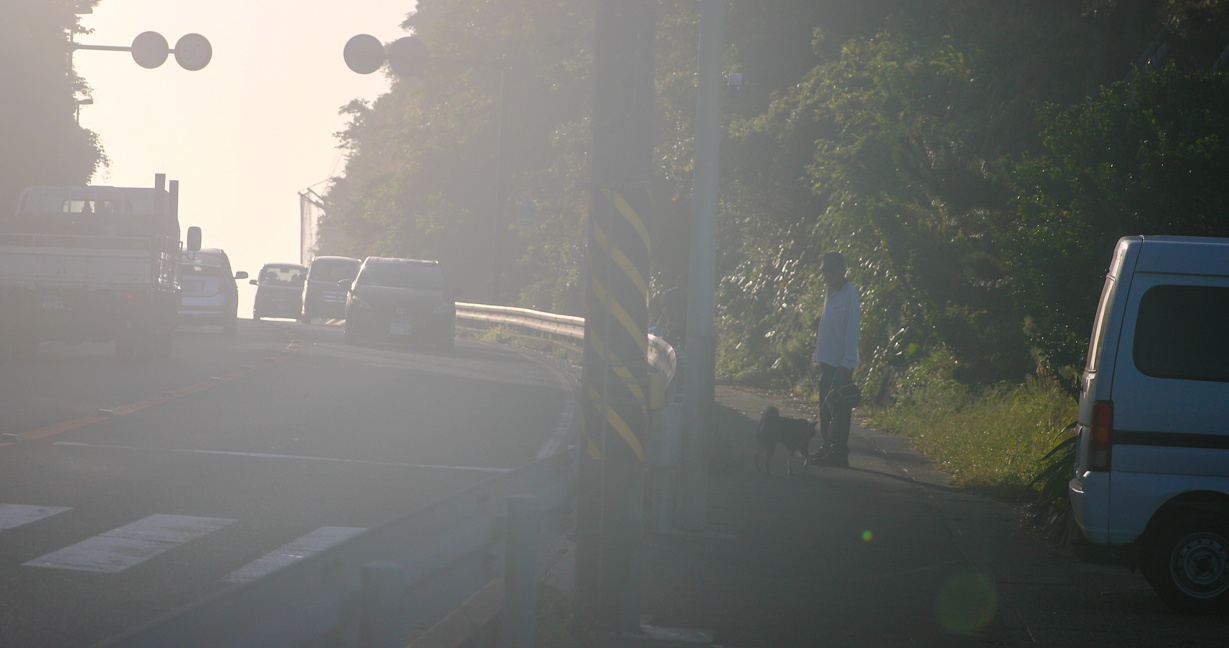 三脚を立てて撮り始めると、眠そうな目をこすりながら波チェックをするロコボーイ、抱井暖の姿が。