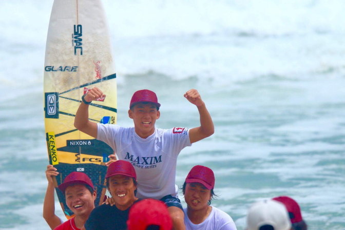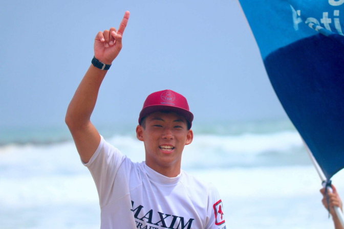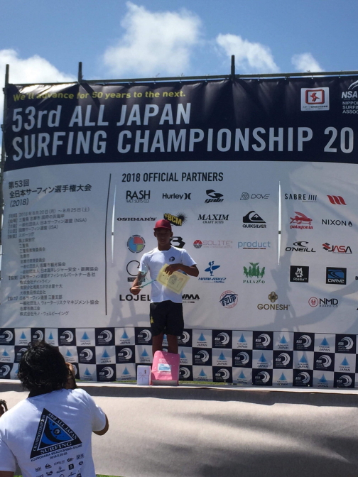 先日の伊良湖にて開催された夢屋サーフィンゲームス田原プロにて見事にプロ資格を獲得したばかりの四国の金沢 呂偉がこれまた今年の8月20〜25日に三重県は伊勢、志摩の国府の浜で開催された全日本サーフィン選手権大会での13歳から16歳までのボーイズクラスにて全てのブロックを1位通過しなんと決勝では10点満点中10点をたたき出す素晴らしいライディングを披露し見事に優勝に輝いた!これには西日本エリア四国そして地元エリアでも大いに輝かしい嬉しいニュースとなった。ノリに乗っている四国からの期待のルーキー 金沢 呂偉に今後も大いに注目したいところだ。おめでとうございます!