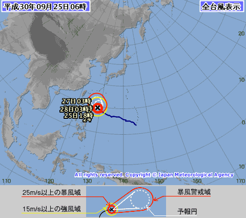 今後さらに勢力を強めながらゆっくりと東北上し、9/29(土)には北に進路を変えつつ、あるいは関東に向かって西進してくるという予報も出ていることから、開催されるとしたら週末の金、土、日あたりが濃厚か。