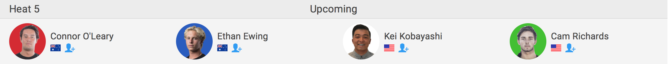 迎えるラウンド3のヒート5では小林桂がConnor O’Leary、Ethan Ewing、Cam Richardsと対戦。
