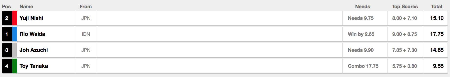千葉の千歳で行われた”南房総プロジュニア”と共に、12月に東台湾で行われる予定のWSL主催ワールドプロジュニアのアジア代表選手枠を掛けた非常に重要な1戦となっている本イベントのMENSプロジュニアを制したのはインドネシアから出場の和井田理央、WOMENSプロジュニアは先週の南房総プロジュニアでの優勝に引き続きプロジュニア戦2連覇目を果たした松田詩野、12歳以下グロムは西世古淳也が優勝を飾った!