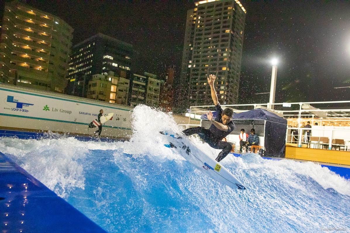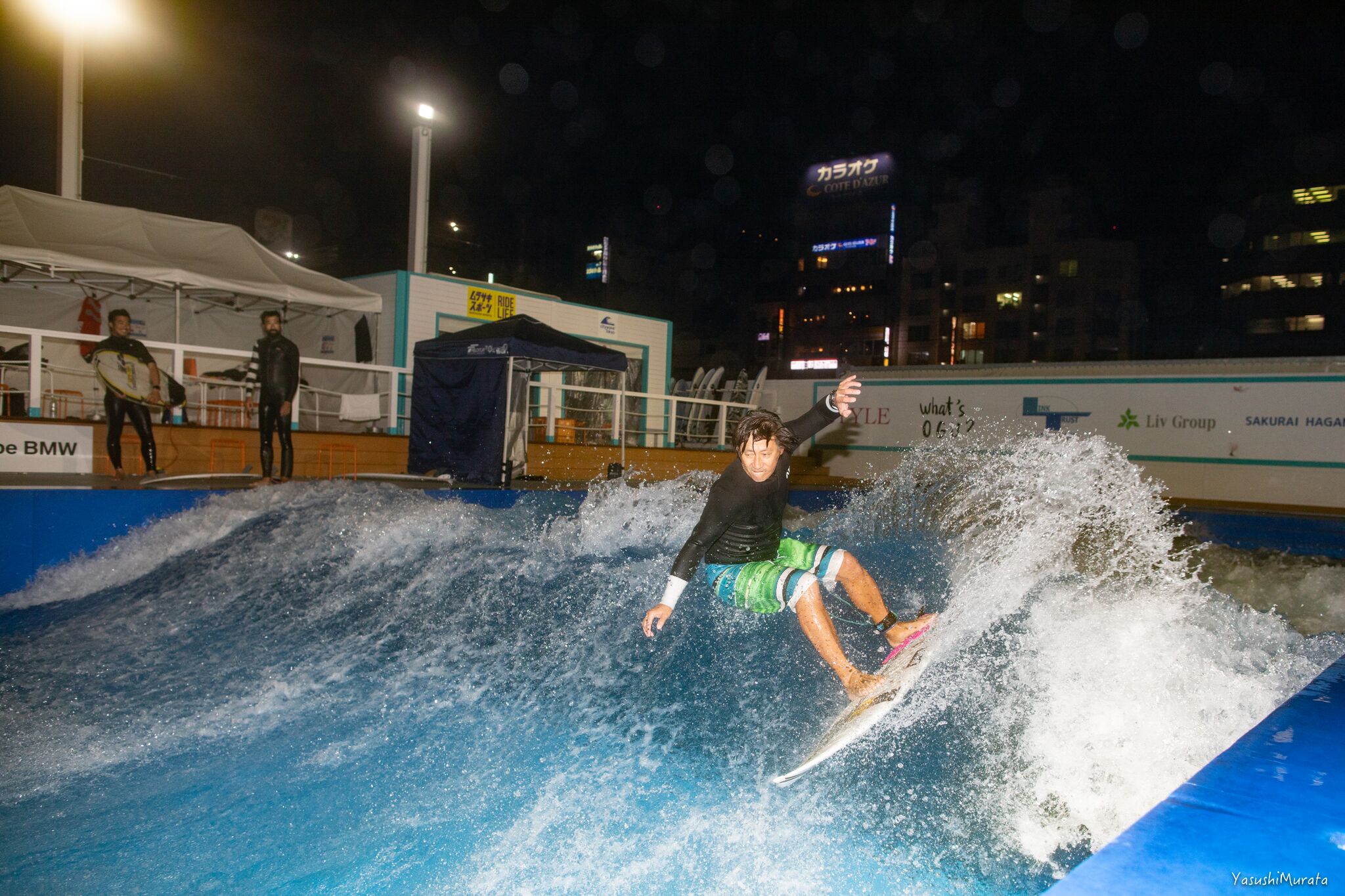 今シーズンから正式にムラサキチームに加入することとなった田嶋鉄兵。初めて滑ったCity Wave Tokyoの波にもすぐに順応してしまうところはさすが。Teppei Tajima.