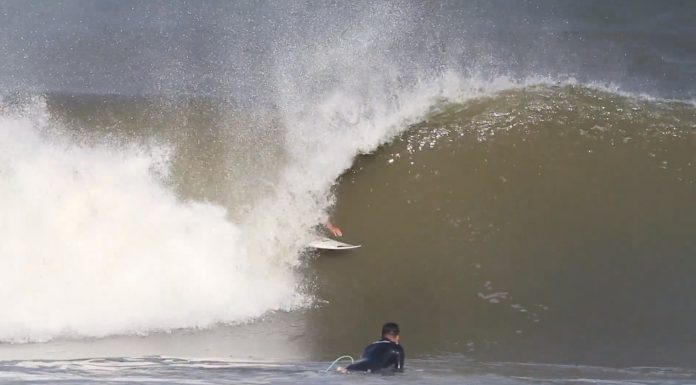 前線を伴った低気圧が北上した影響により風が南西寄りとなり、綺麗なチューブ波が姿を現した10/27(土)の千葉エリア。