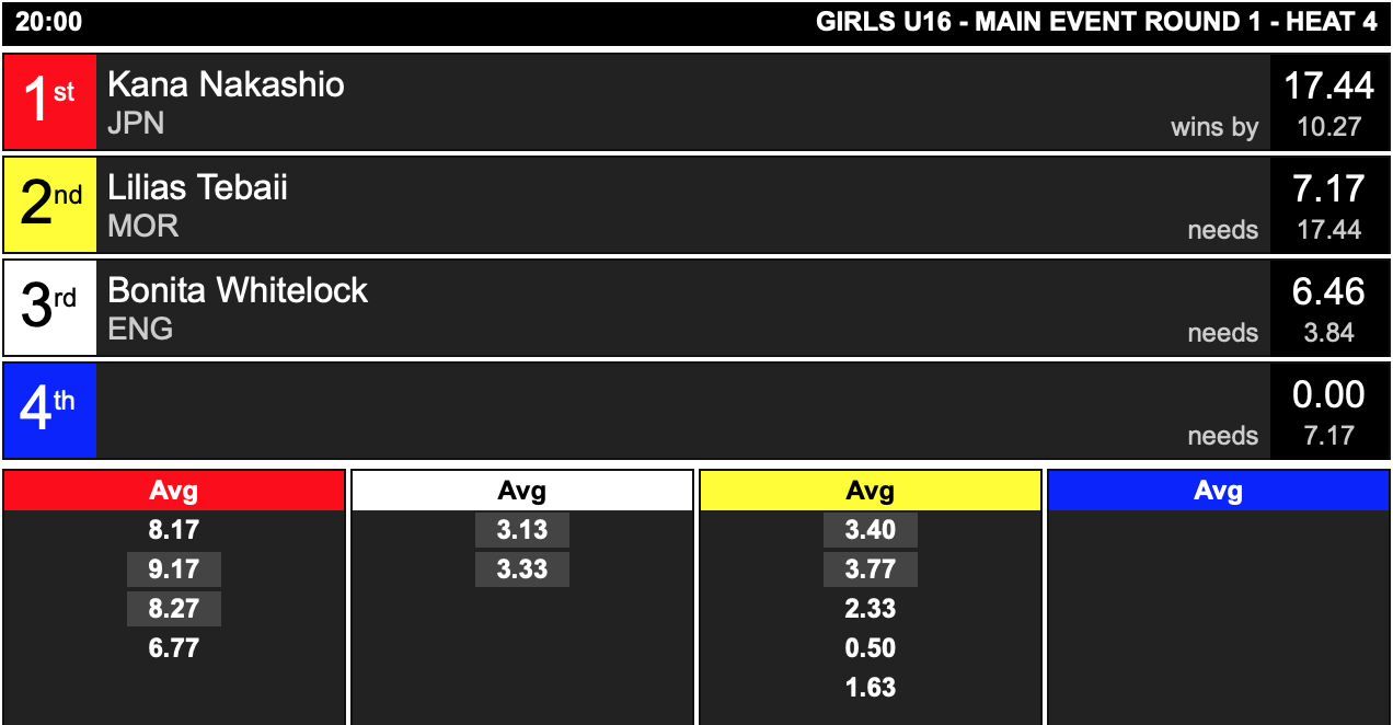 コンテストDAY1はオープニングセレモニー後にMENS U-16(男子16歳以下)のヒートが行われ、日本代表チームのトップバッターとなったU-16の伊藤李安琉が見事1位でラウンドアップ!