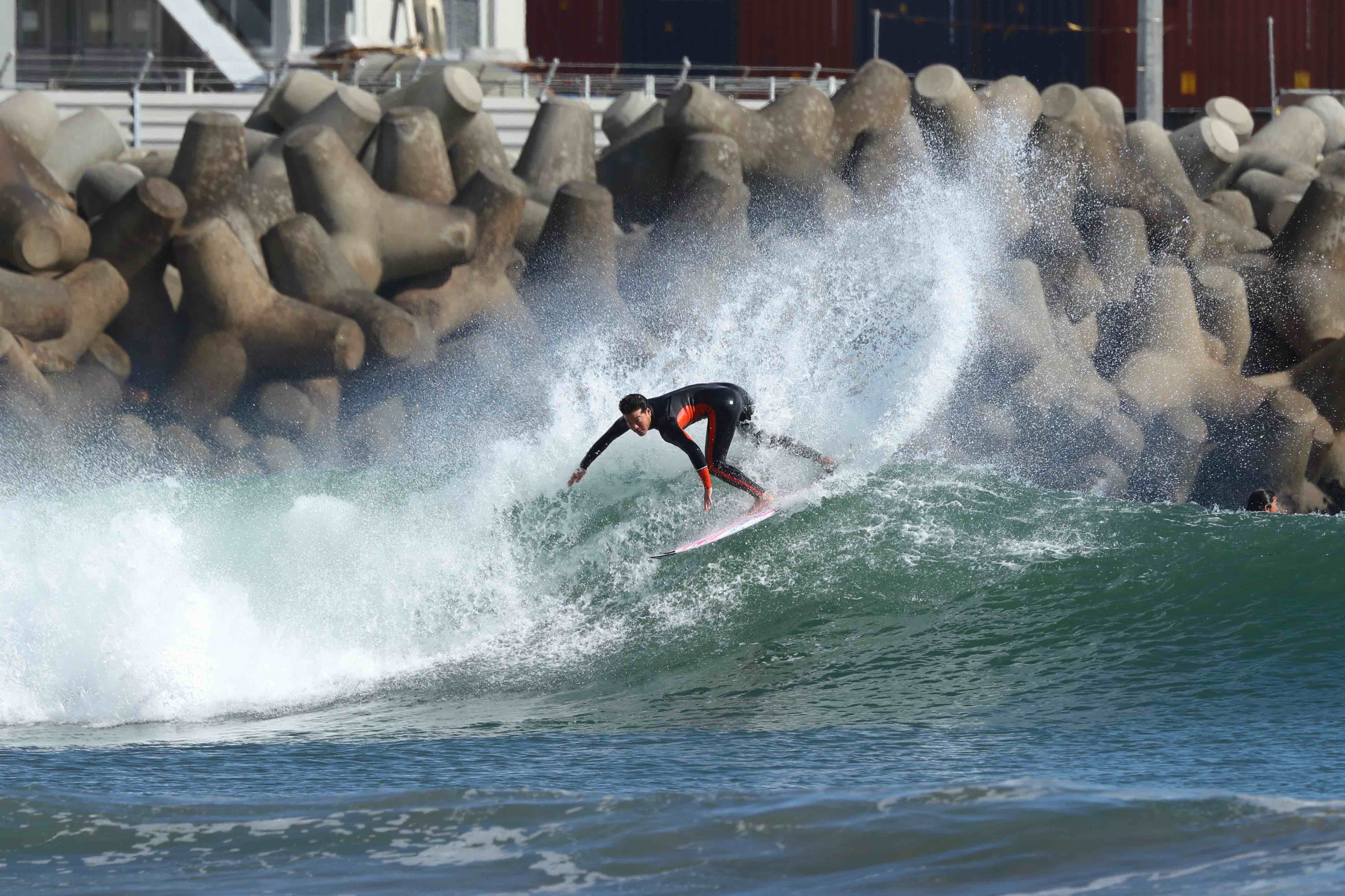 DA HUI Backdoor Shootoutではパイプでのバックサイド・チューブで11ptという大会最高得点を叩き出し、もはやその名はワールドワイドとなった松岡慧斗。そんな彼のサーフィンは、彼のホームでもあるここ仙台新港の波に育まれてきたことは言うまでもない。Keito Matsuoka.