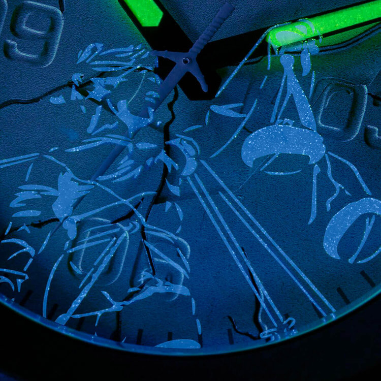 …And Justice for Allのアルバム・アートワークを小さな盤面いっぱいに落とし込んだモデル。文字盤だけでなく、リューズやベゼルに至るひびがインバクトあるモデル。ガラスにはアートワークに用いられた女神のグラフィックが特殊な塗料を使ってデザインされており、ブラックライトによって浮き上がる仕様となっている。秒針には女神が手にする剣がモチーフ。カスタム裏蓋デザインに”…And Justice for All”とMETALLICAのロゴ刻印入り。¥34,000(税別)