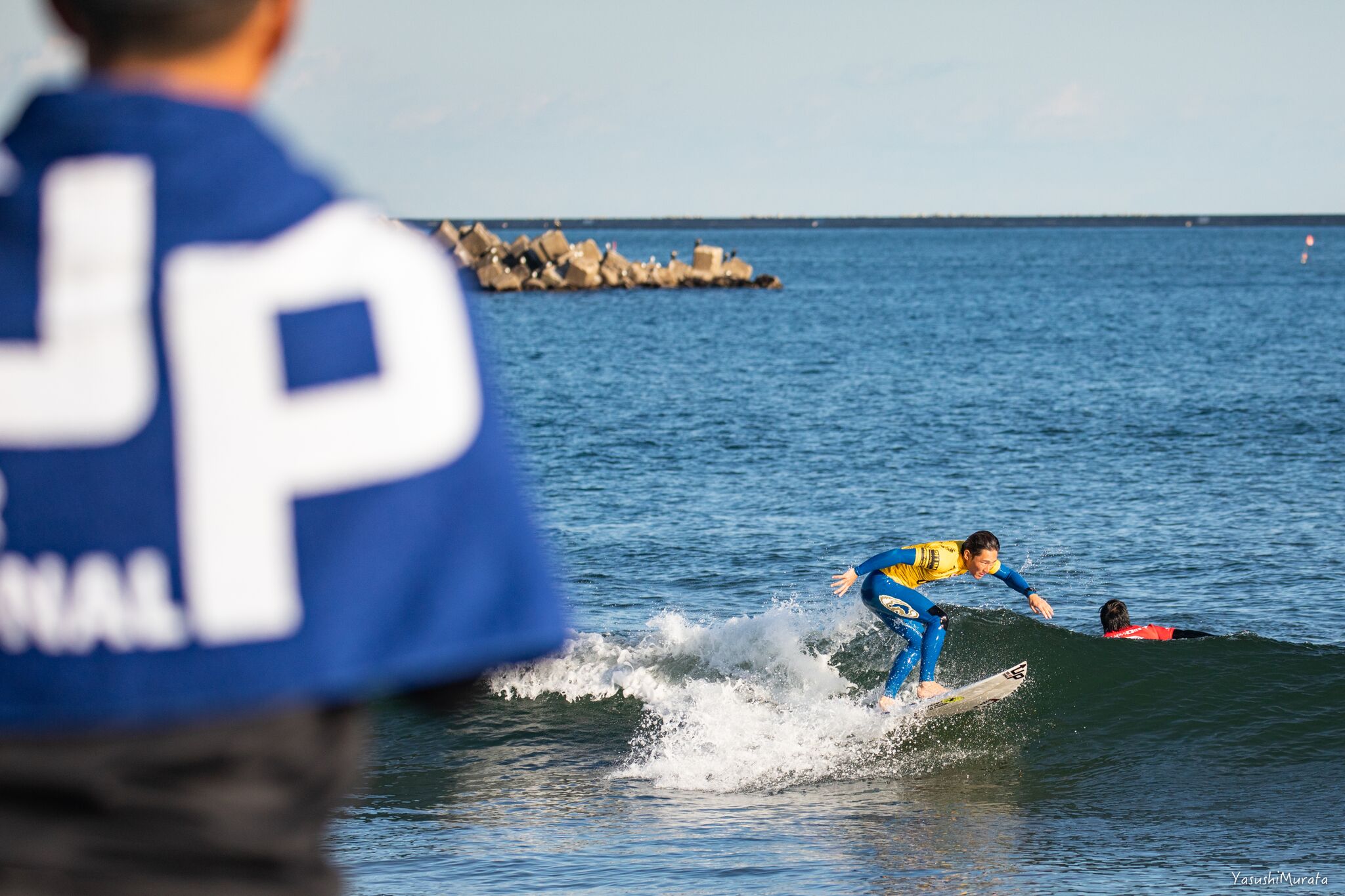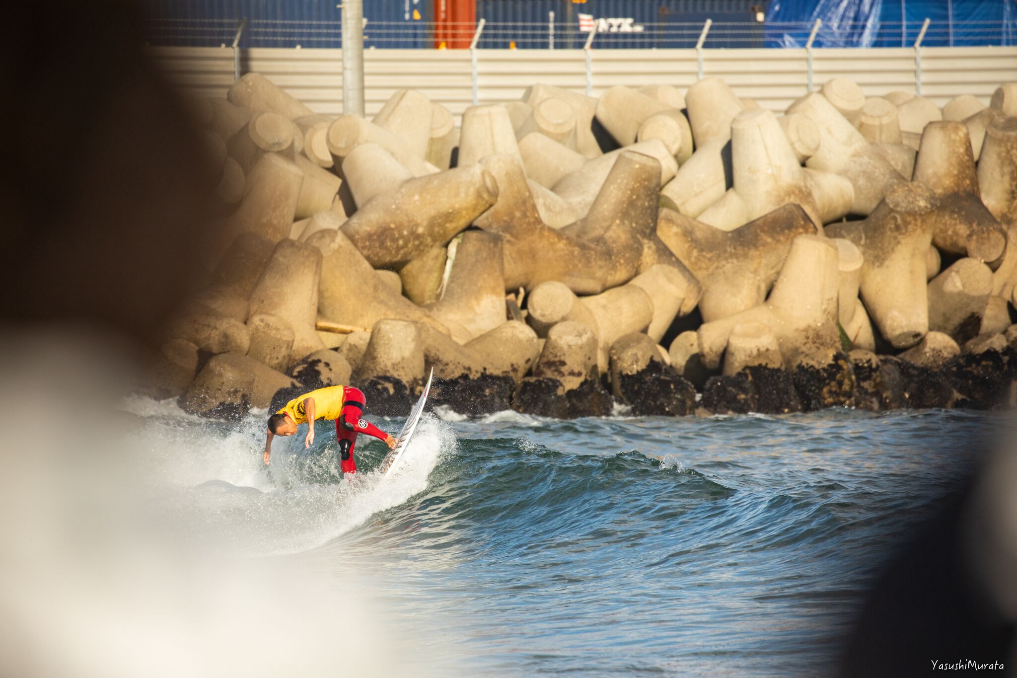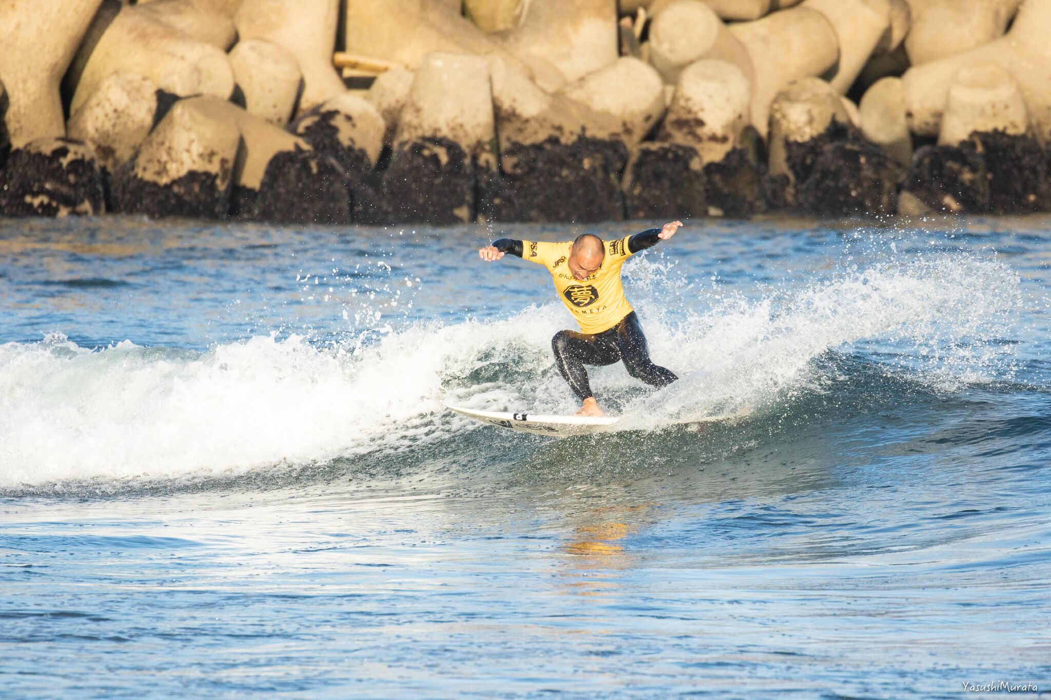 コンテストDAY2となった11/2(金)は、プロトライアル・ラウンドが行われたコンテスト初日よりもさらにサイズダウンした膝前後の厳しいコンディションとなり、プロトライアル・ラウンドの残りのヒートを消化後、台風の影響で延期となっていたJPSA第3戦”田原オープン”の残りのヒートを消化。